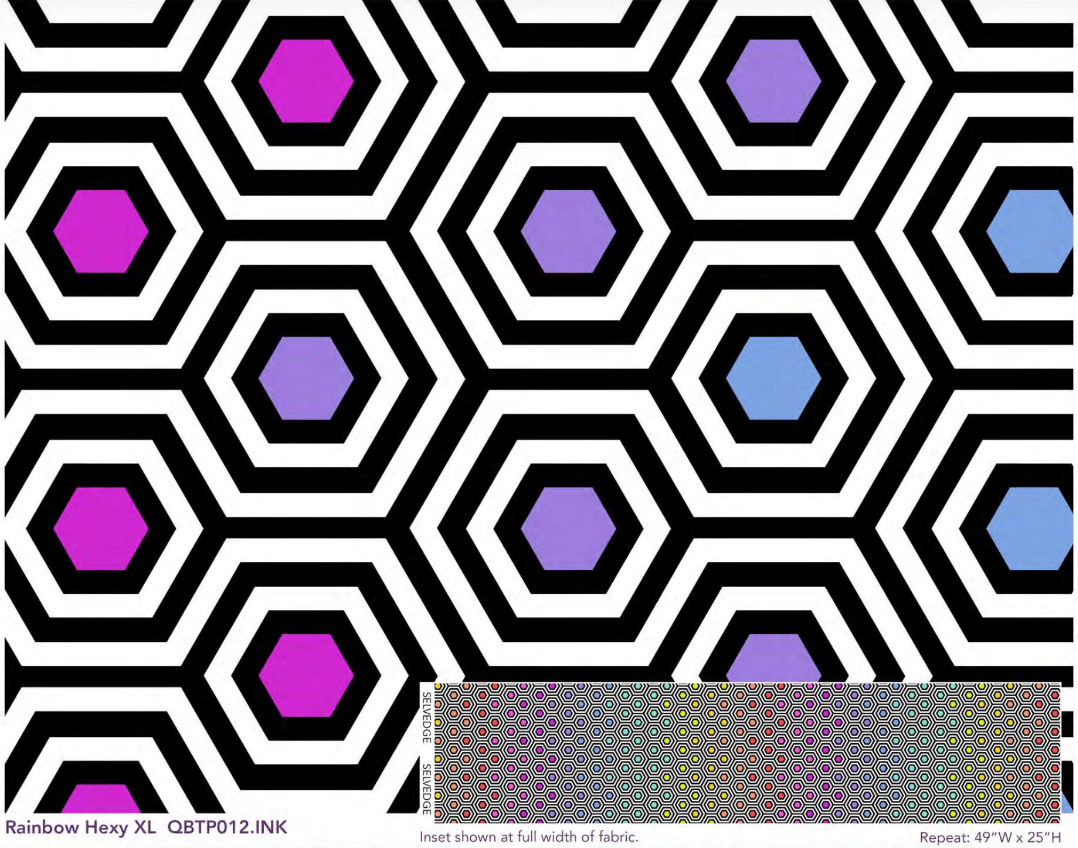 2023 True Colors - 108" Wide Sateen Backing - Rainbow Hexy XL in Ink - 3 Yard Cut