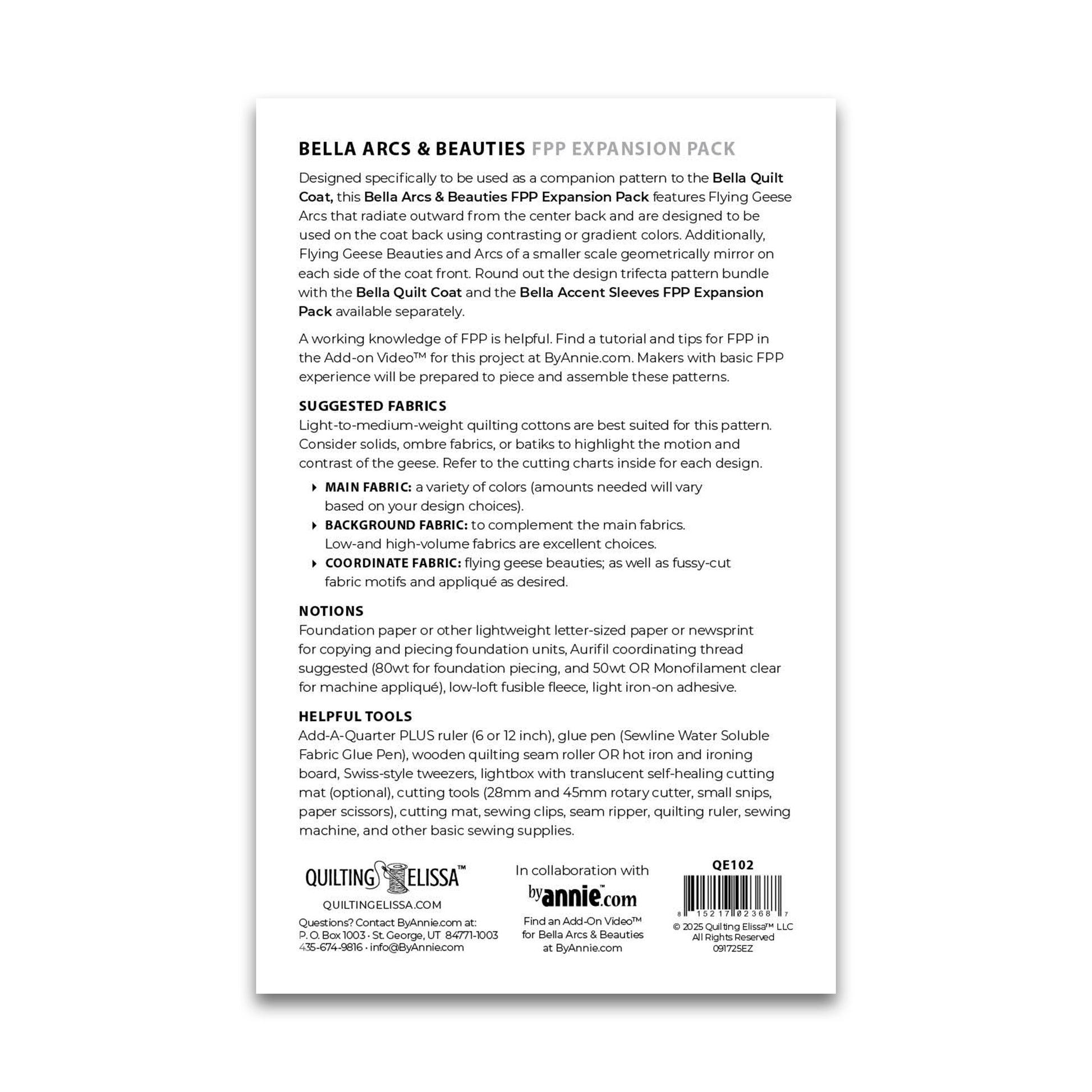 Bella Arcs & Beauties FPP Expansion Pack - Patterns by Annie - Paper Pattern - QE102