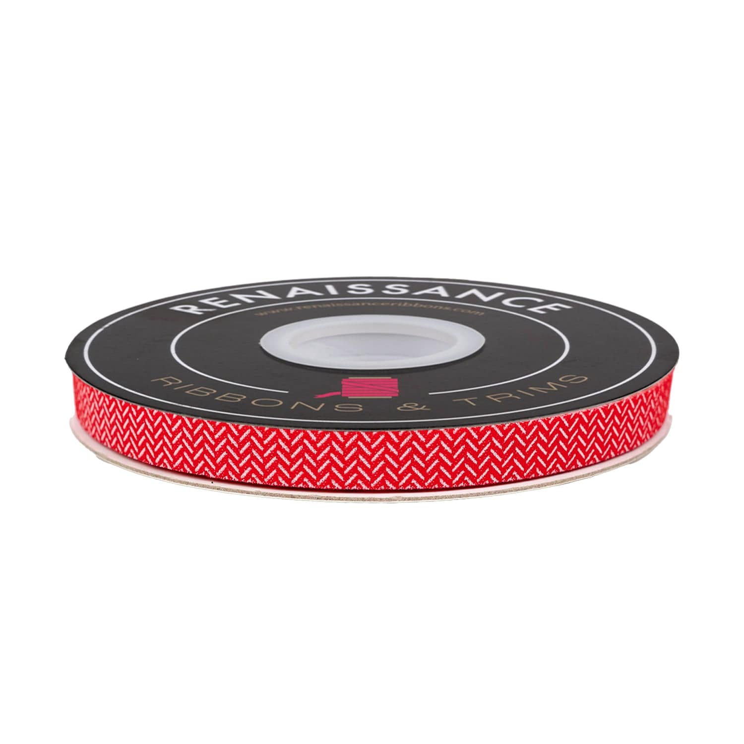 Berry and Pine - Yule Herringbone in Holly - 3/8" width - by Lella Boutique - One Yard