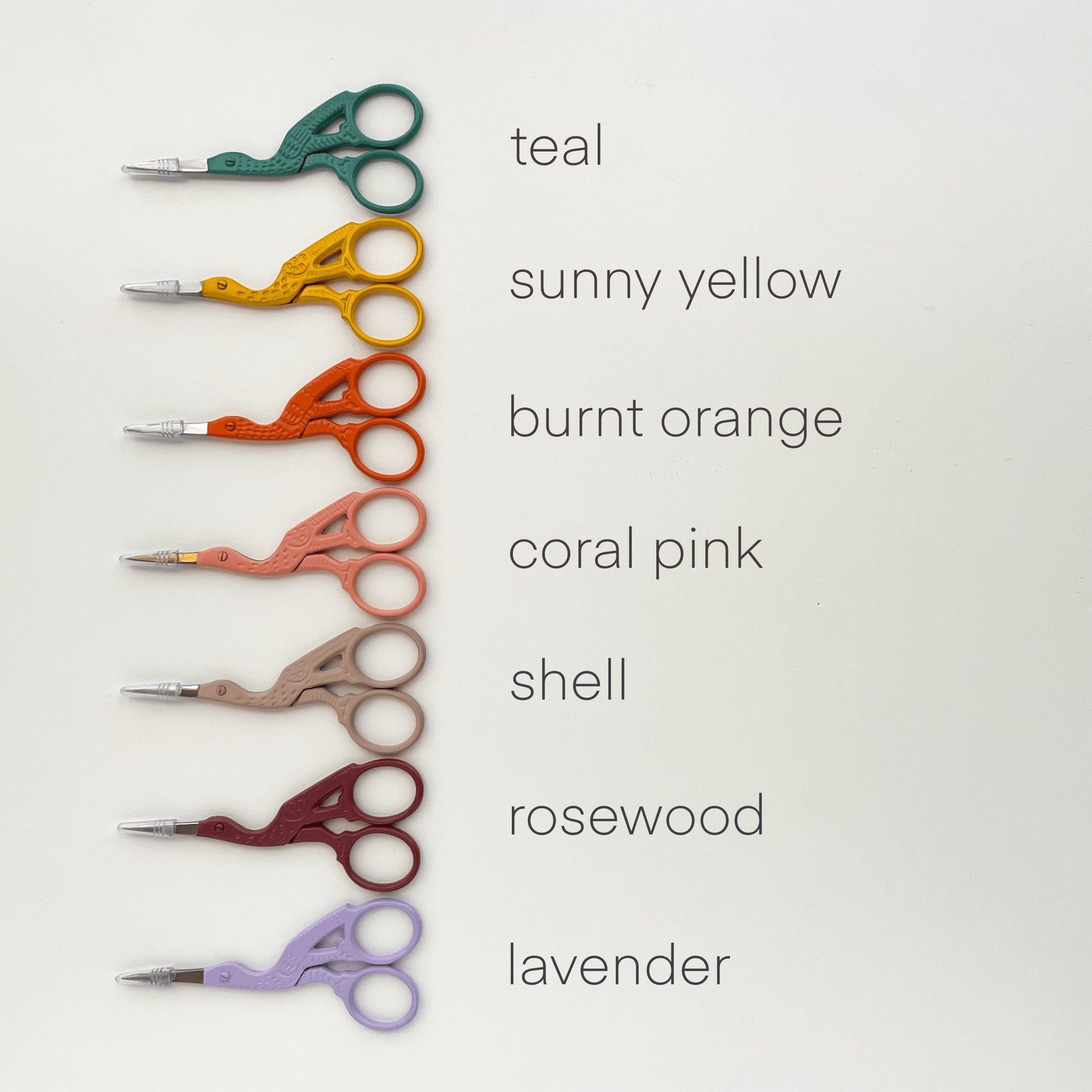 Small, colorful sewing scissors featuring a popular stork design are perfect for various needlework uses such as: embroidery, cross stitch, sewing, quilting, crochet, knitting and more.