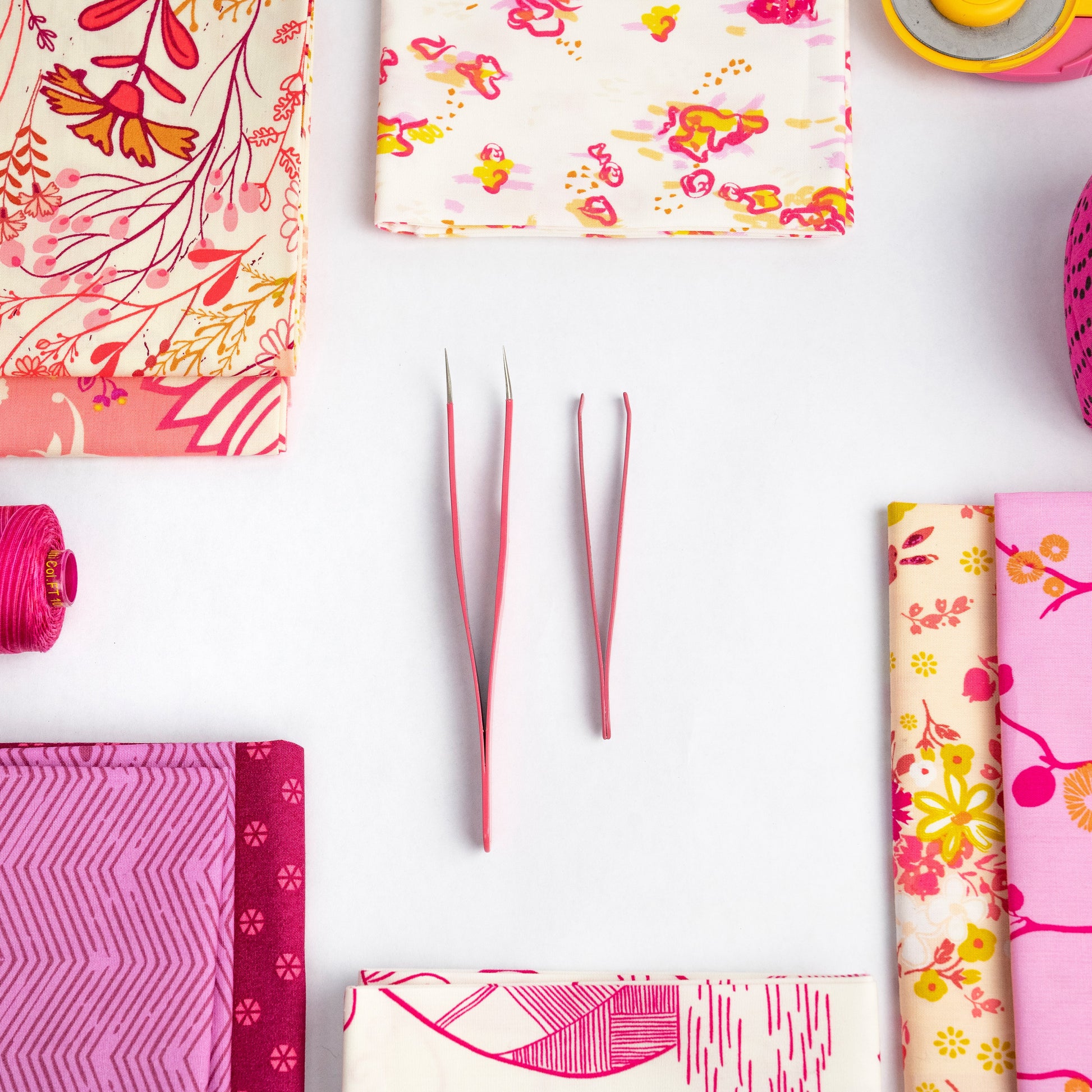 This precision tweezer set is a must-have in the sewing room! Originally designed to pull foundation papers from foundation paper piecing, the flat-nosed tweezers are perfect for getting up close to the seam line, and the pointed tweezers are perfect from pulling papers at seam intersections.
