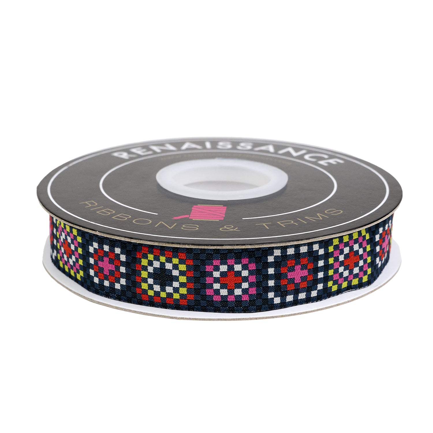 Channel nostalgic charm with the Granny Square ribbon from Alexia Abegg. This 7/8" wide ribbon, in a moody stormy blue, is inspired by the classic crocheted granny squares that bring back memories of handmade warmth and care. Perfect for adding a cozy, vintage touch to your projects, this ribbon works beautifully for gift wrapping, crafting, or adding a homespun feel to your designs. The Granny Square ribbon blends retro charm with a modern twist, making it a delightful addition to any project.