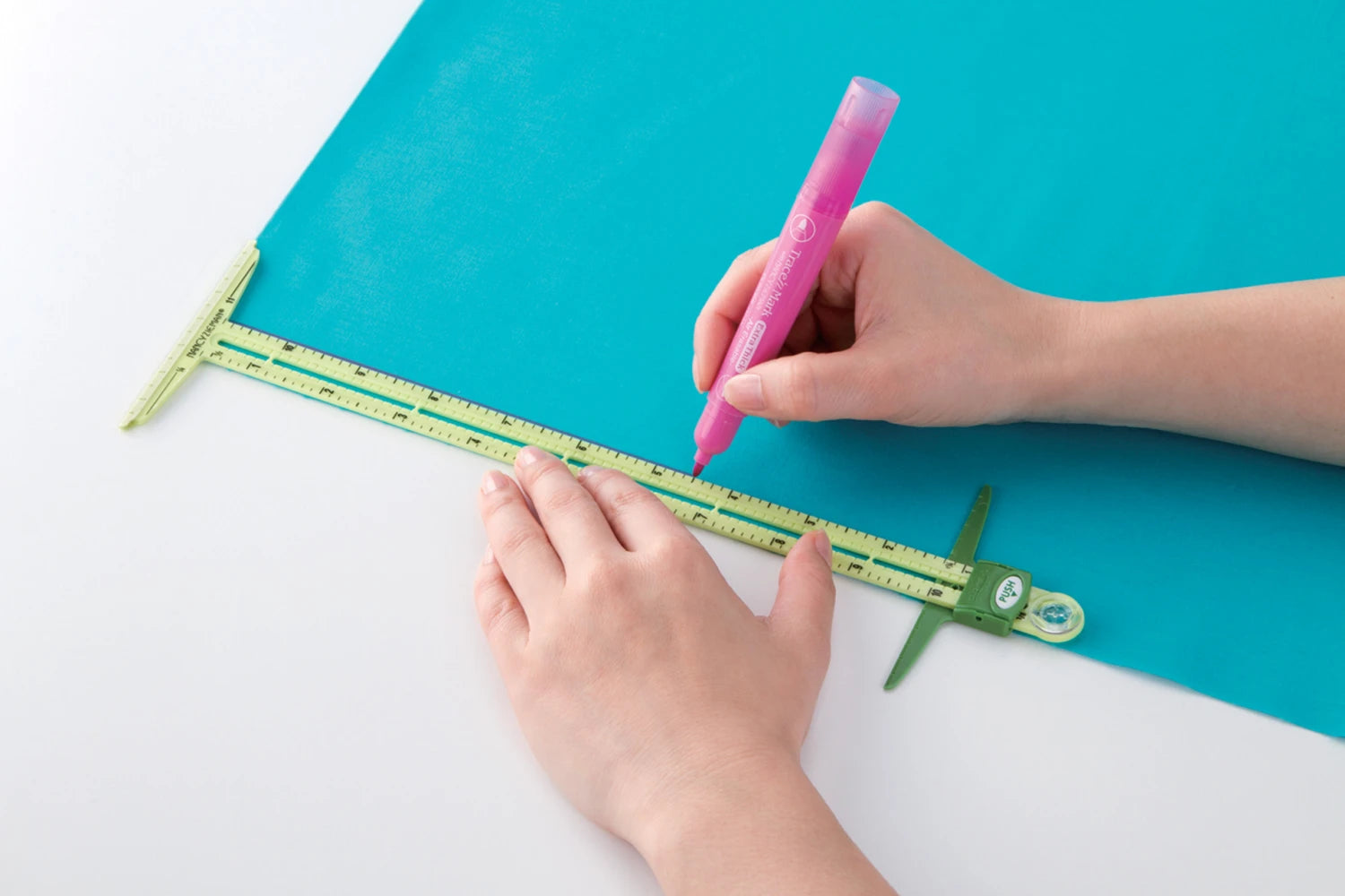 A multifunctional 11in sliding gauge for easy marking! Ideal for sewing, quilting and home décor. Use for spacing and marking buttonholes, as a circle compass, hem gauge, seam allowance gauge and "T" gauge.
