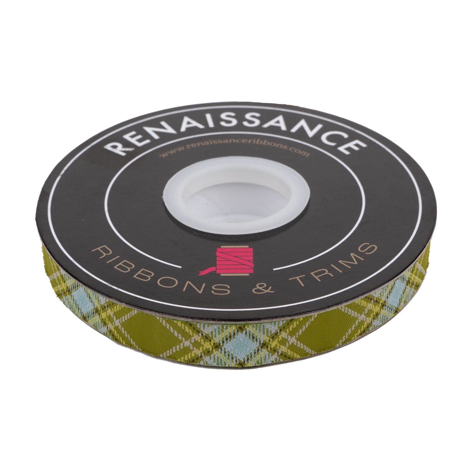 Plaid Diagonal in Fern - 5/8" wide woven jacquard ribbon
