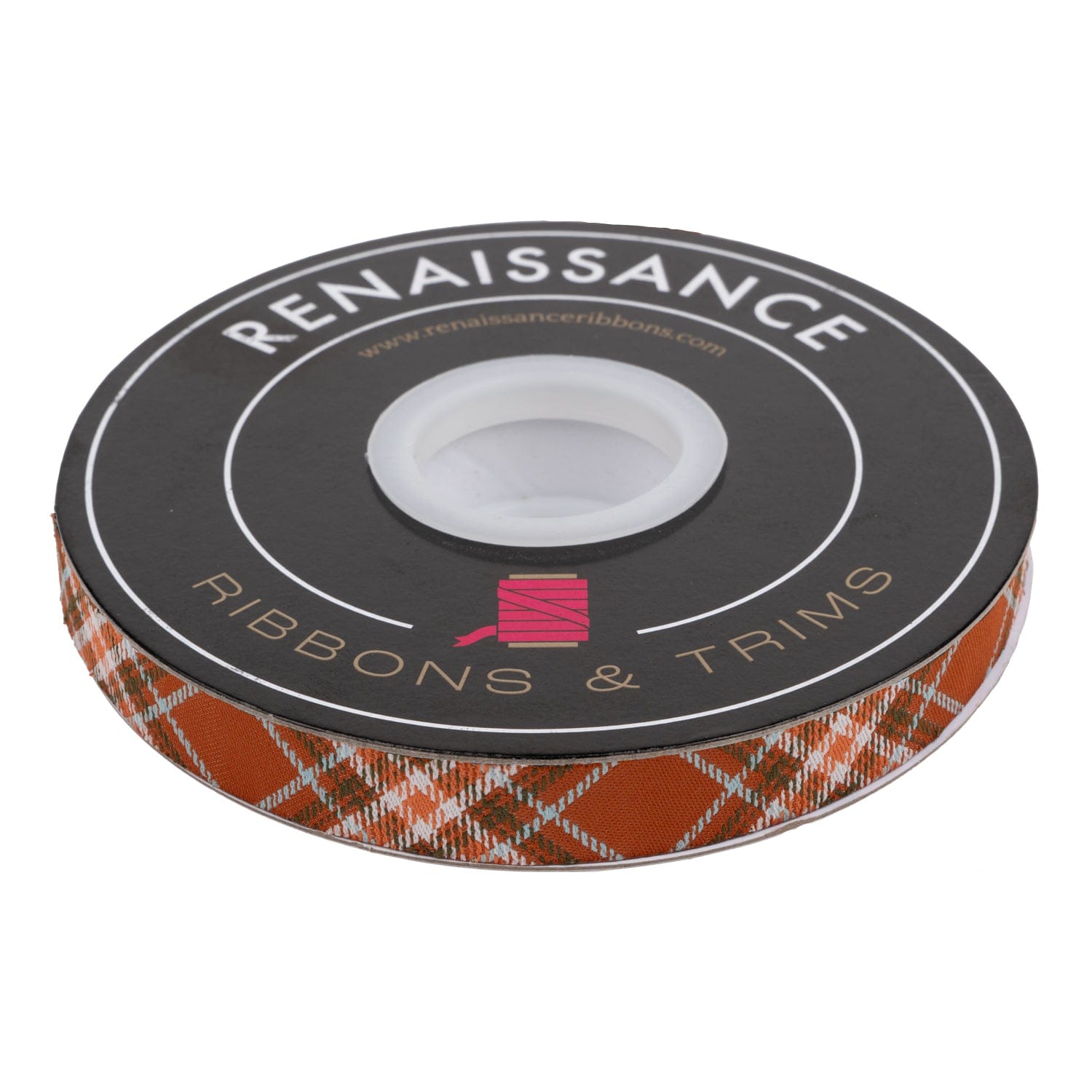 Plaid Diagonal in Rust - 5/8" wide woven jacquard ribbon