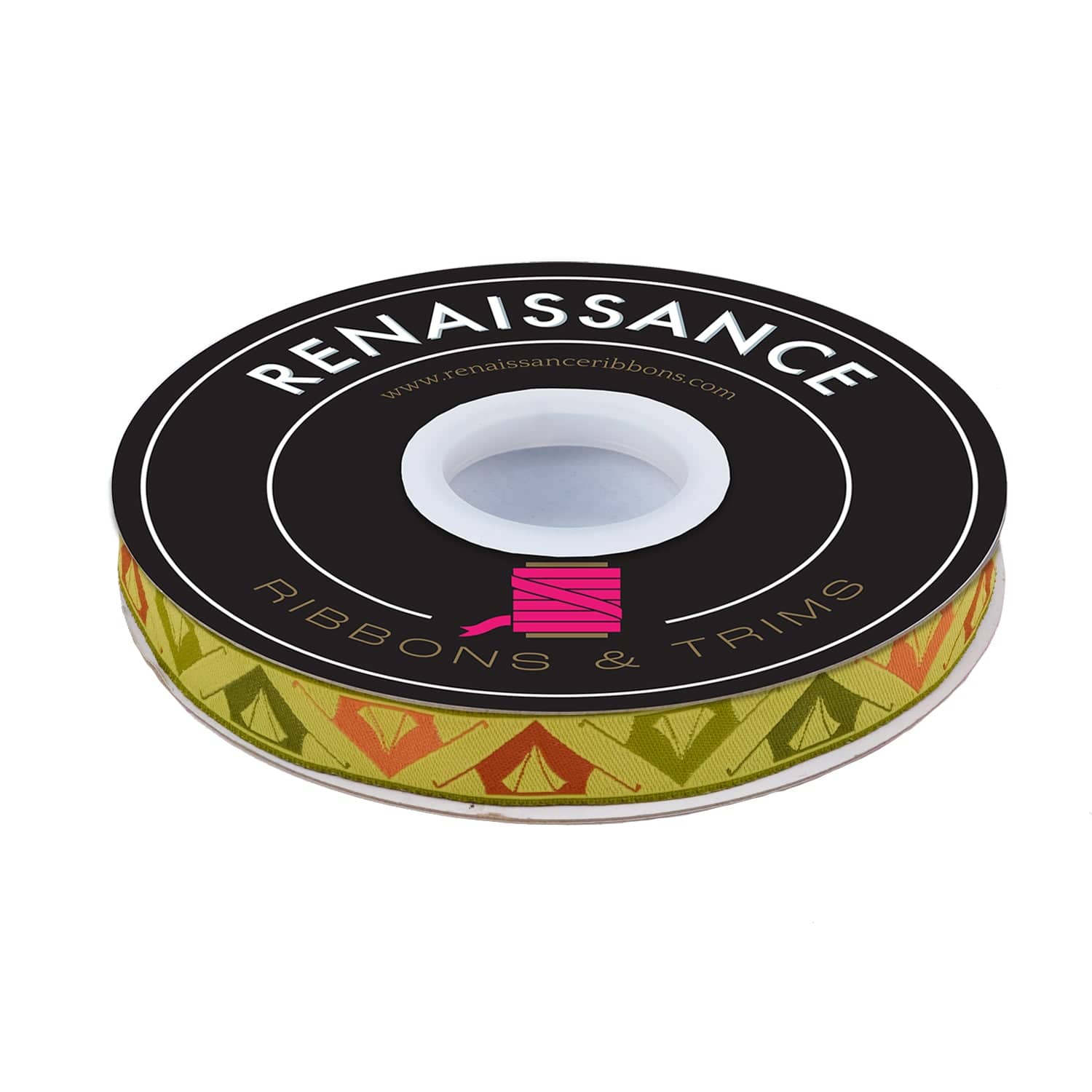 Tent Time in Fern - 5/8" wide woven jacquard ribbon