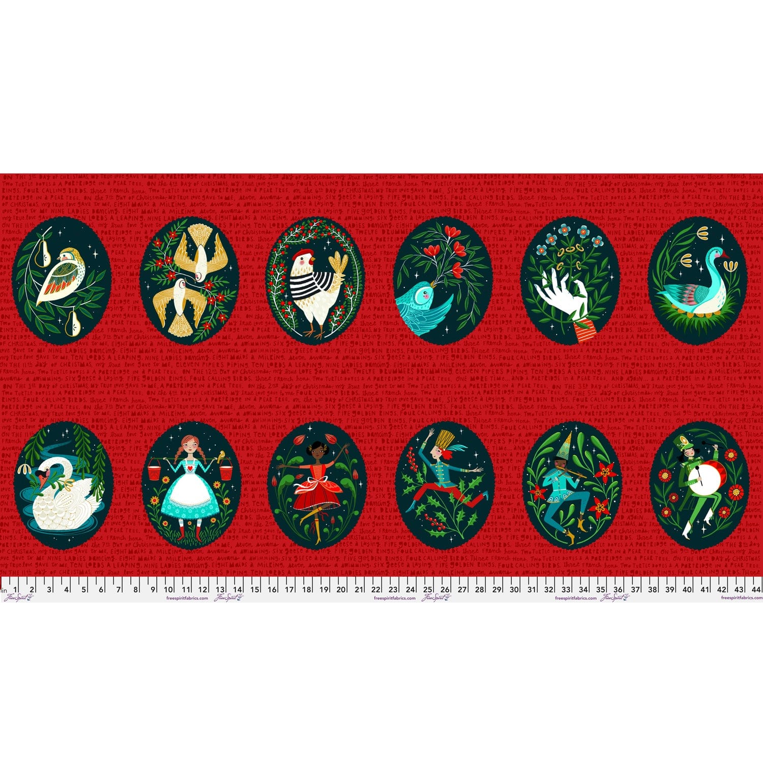 12 Days of Christmas Panel - 12 Days of Christmas by Cori Dantini - 24" x WOF Panel