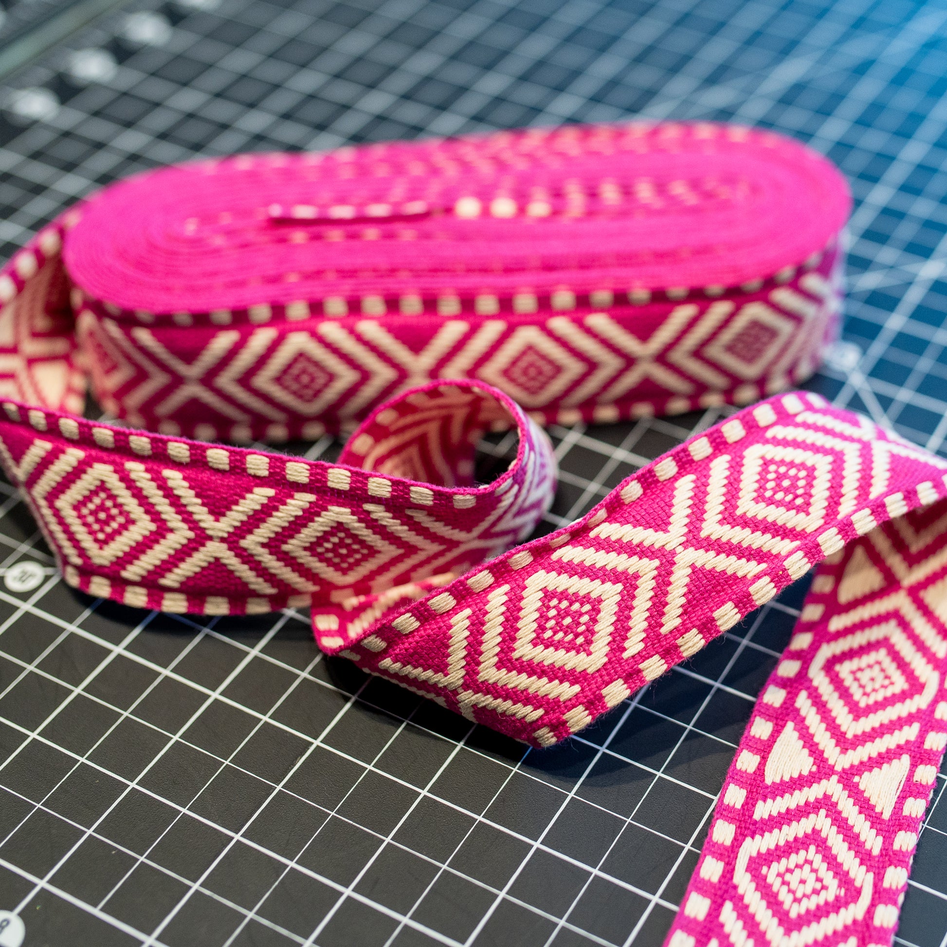 Embroidered Ribbon / Webbing - Pink Diamond - One Yard