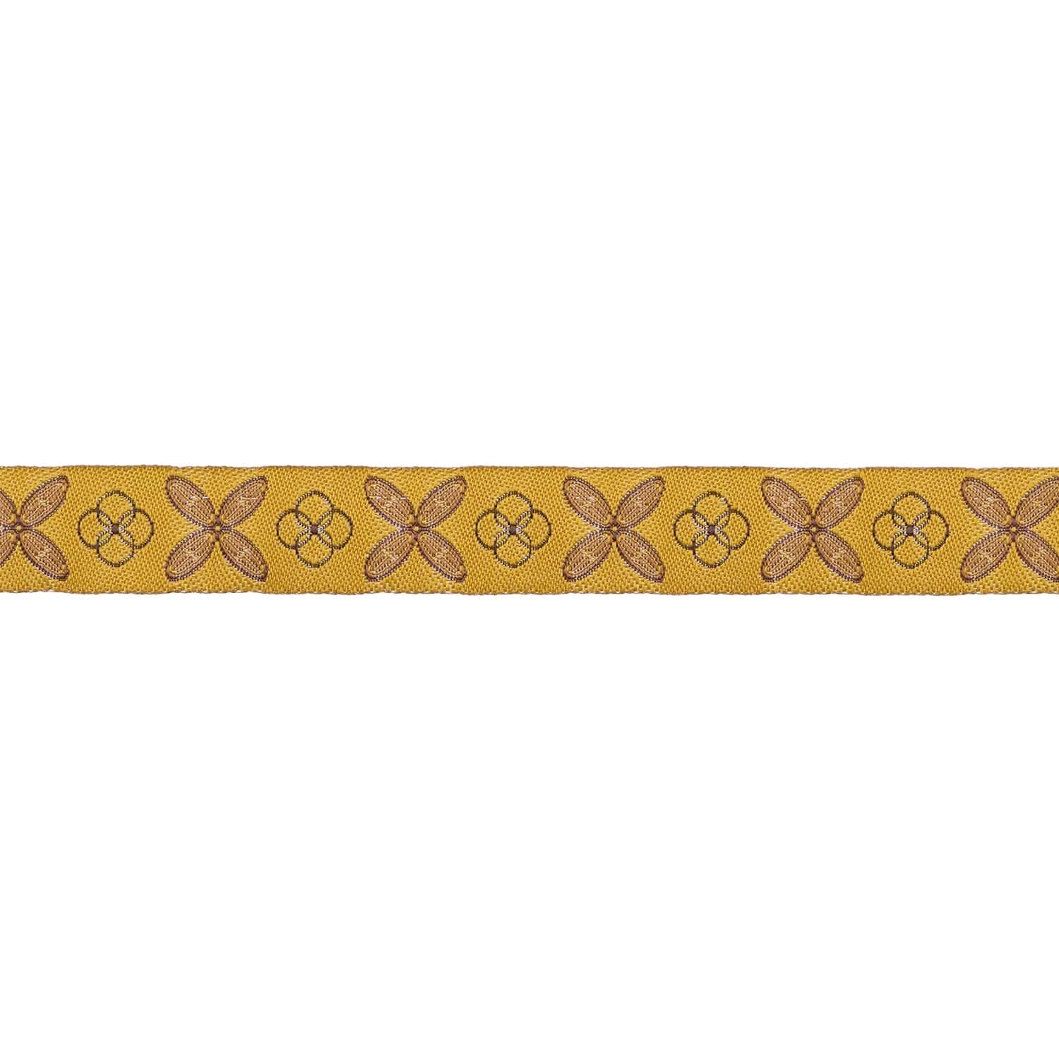 Sophisticated and timeless, the Tiles ribbon from Giuseppe Ribaudo’s Enrapture collection brings the beauty of intricate patterns to your creative projects. This 5/8-inch wide ribbon features a repeating geometric tile design, perfectly balanced against a warm, golden background. The structured yet delicate motif evokes the elegance of decorative mosaics and classic architectural details.