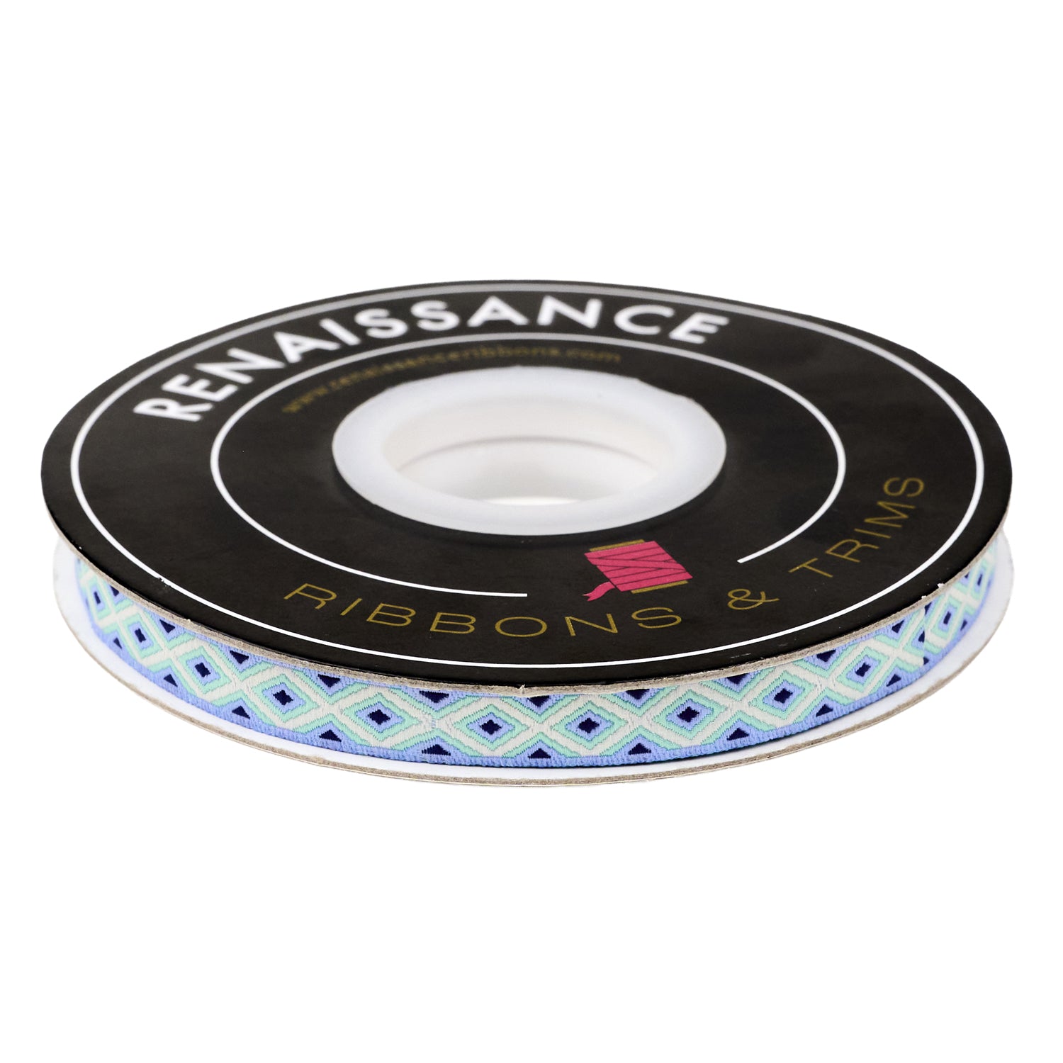From Tula Pink’s Floral Reef collection, Lighthouse Windows in Marine features a charming pattern reminiscent of a friendship bracelet, set against a crisp blue background. At 3/8" wide, this ribbon adds a delicate, playful touch to quilts, bags, and handmade projects, capturing the joy of seaside whimsy in miniature.