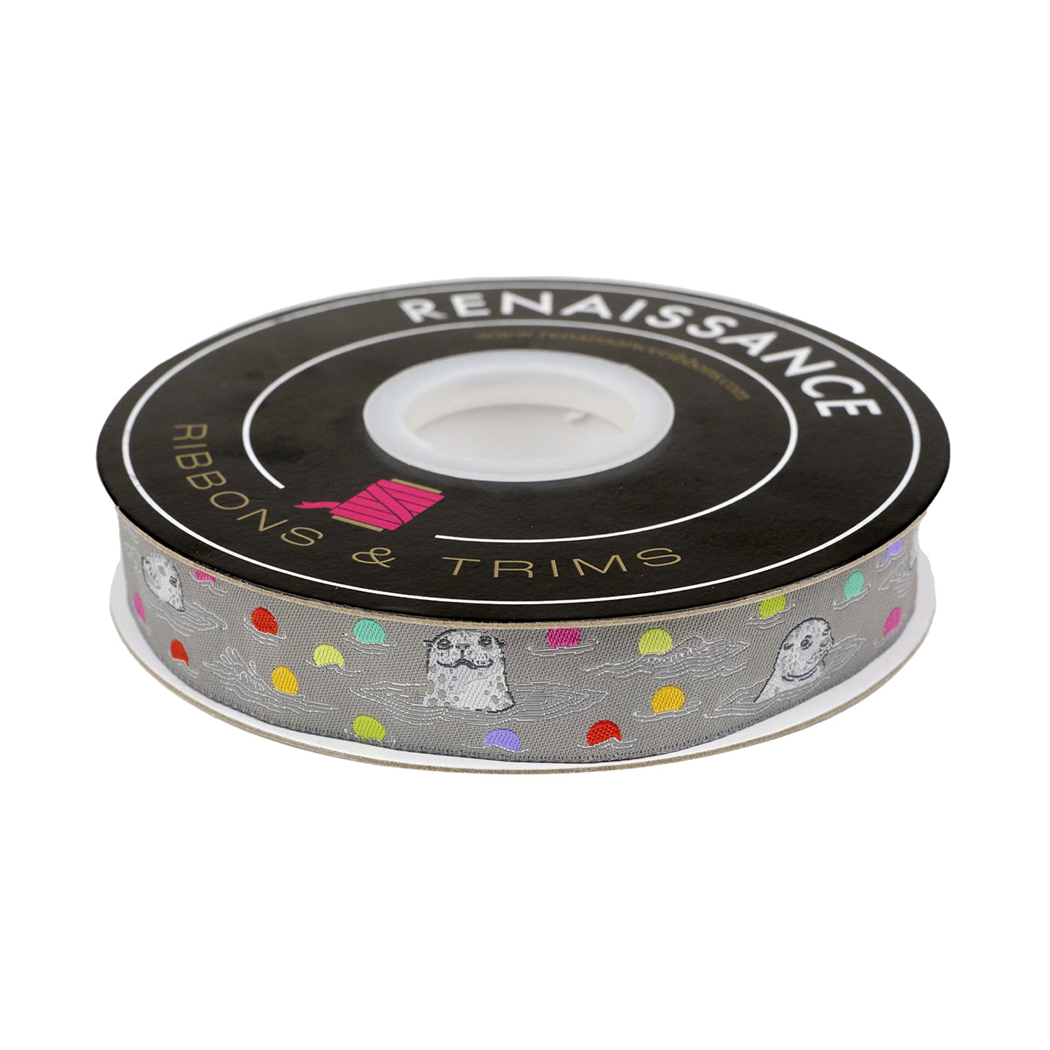 Make a splash with the Seal the Deal ribbon! This 7/8 inch wide ribbon features adorable little seals bobbing playfully in the water, each with charming expressions that are sure to bring a smile. Scattered rainbow orbs add a touch of magic and color, making this ribbon a delightful choice for any project.