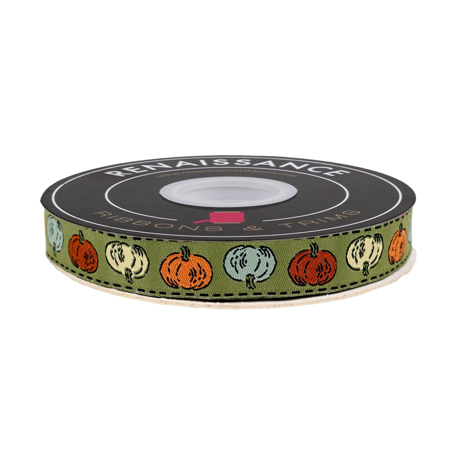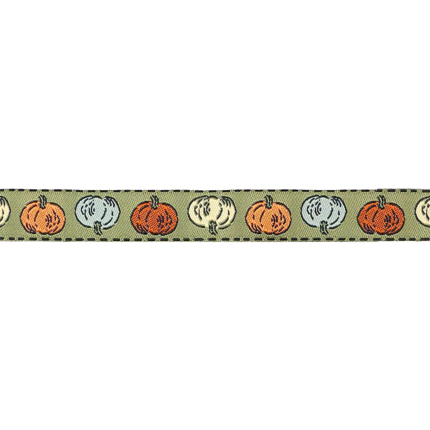 Celebrate the charm of autumn with the Petite Pumpkin ribbon, featuring a delightful array of multicolored pumpkins against a vibrant green background. This 5/8" wide ribbon captures the essence of fall with its playful and colorful pumpkin motif, making it perfect for adding a touch of seasonal cheer to your crafts. Ideal for decorating gift packages, creating festive wreaths, or enhancing your Halloween and Thanksgiving projects, this ribbon brings a whimsical and warm touch to any autumn-themed creation.