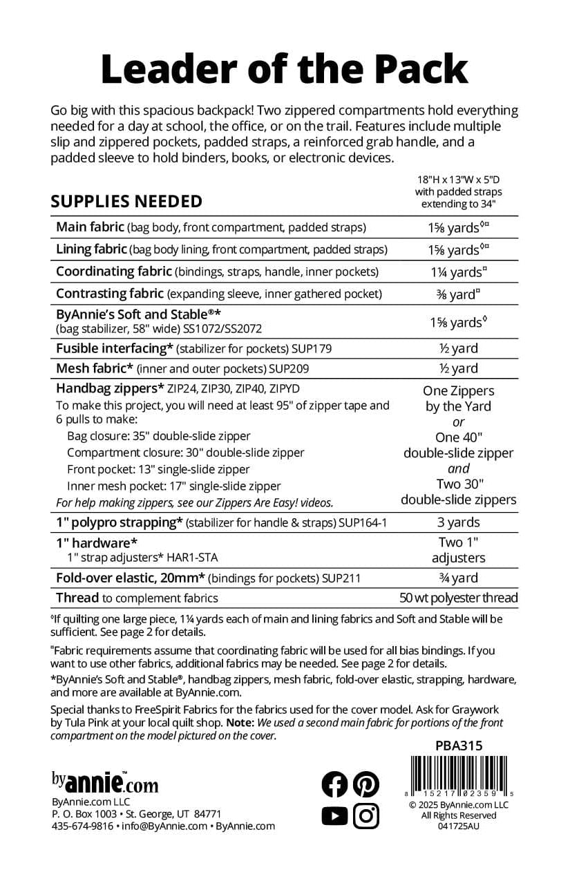 Leader of the Pack - Patterns by Annie - Paper Pattern - PBA315