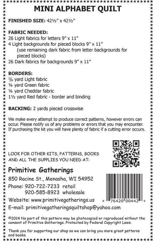 Mini Alphabet - Paper Pattern - Primitive Gatherings - PRI 442