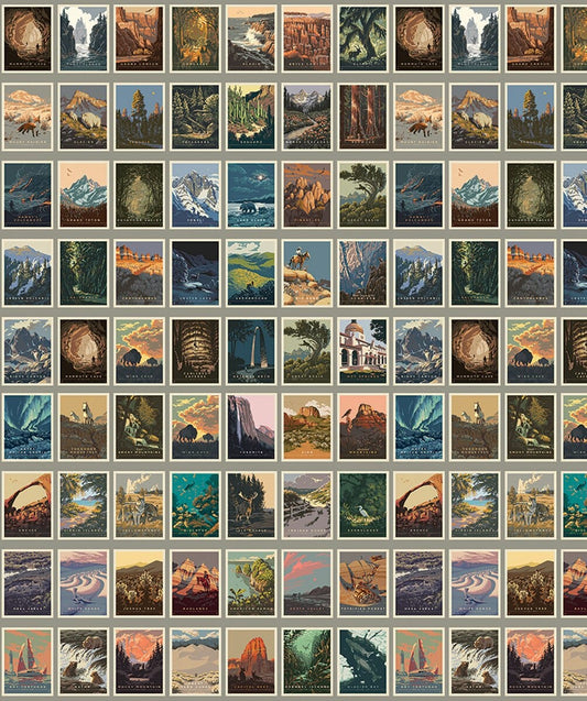 National Parks - Postcards in Gray - Anderson Design Group - CD13291-GRAY - Half Yard