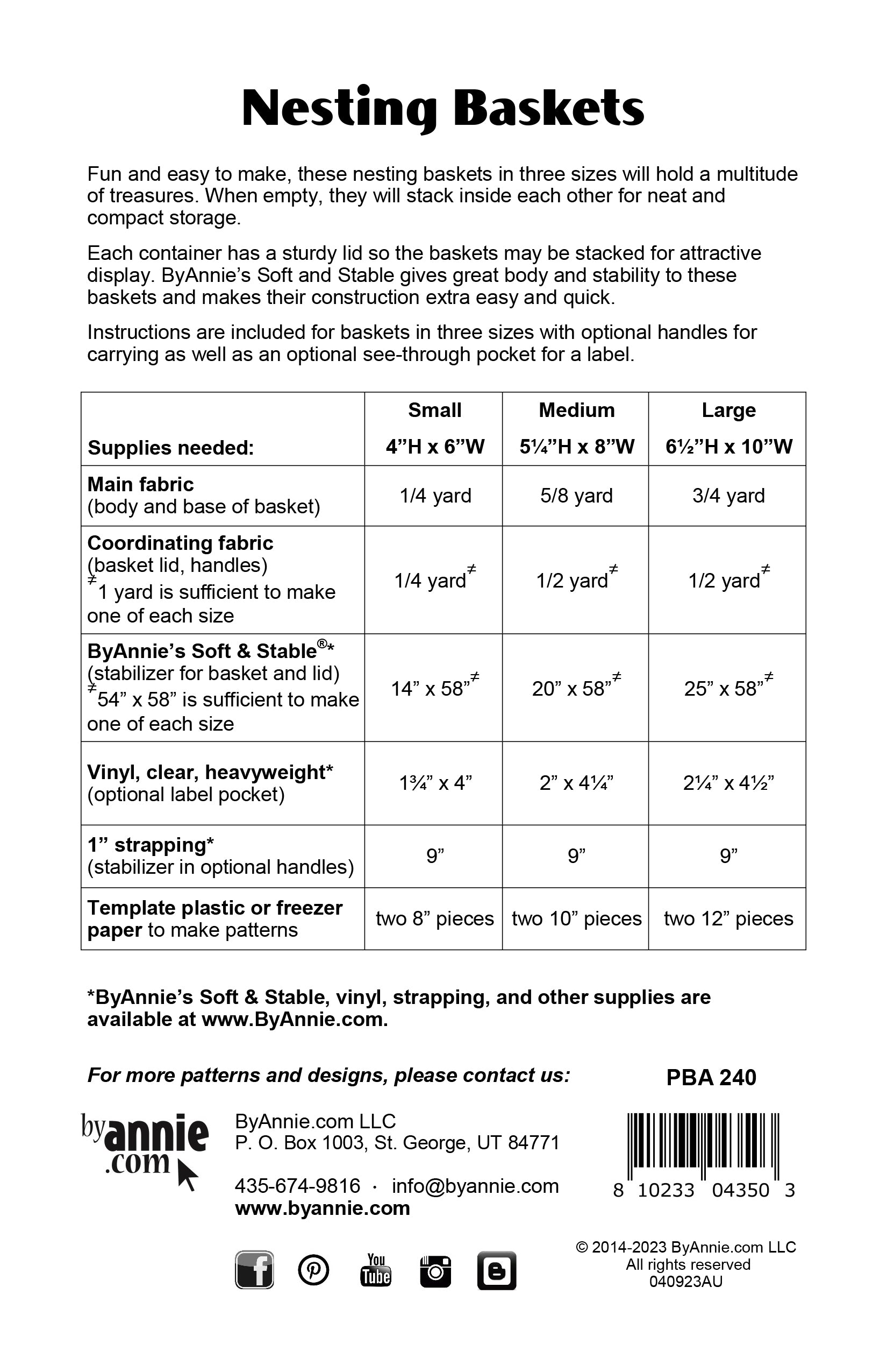 Nesting Baskets - By Annie - Printed Bag Pattern