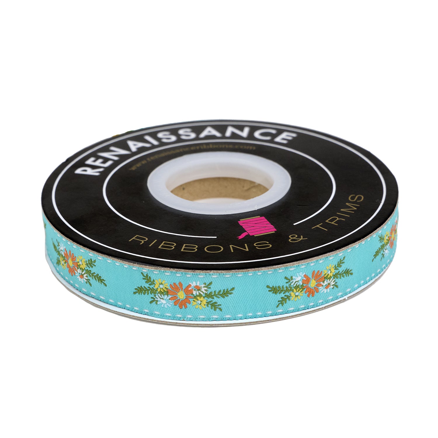 Delicate and timeless, the Floral Trim ribbon from Cathe Holden’s Paper Hamlet collection brings vintage charm to every stitch. This 5/8-inch wide ribbon features adorable floral sprays scattered across a fresh aqua background, evoking the look of antique fabric trims and classic botanical prints. The soft yet vibrant color palette adds a touch of sweetness and nostalgia to any project.