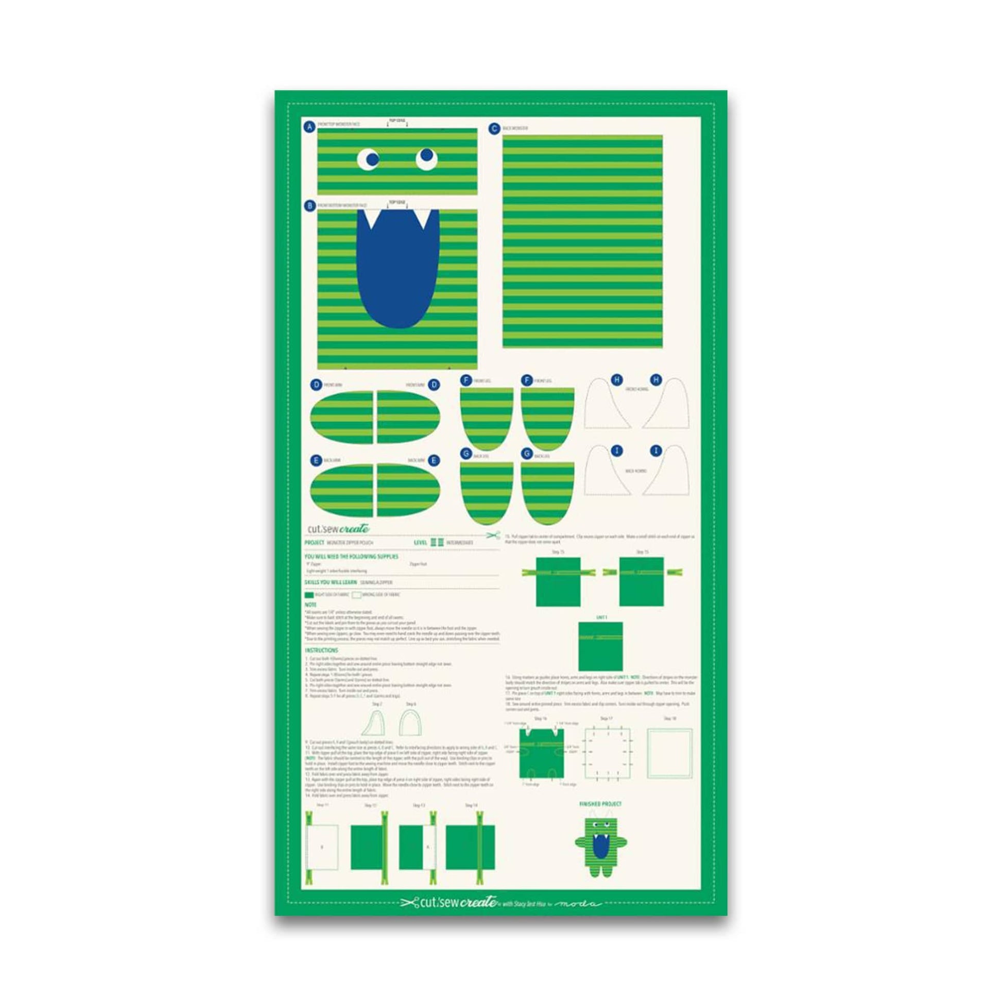 PREORDER - Cut Sew Create Part Two - Monster - Zipper Pouch Panel - Stacy Iest Hsu - 20937 11P