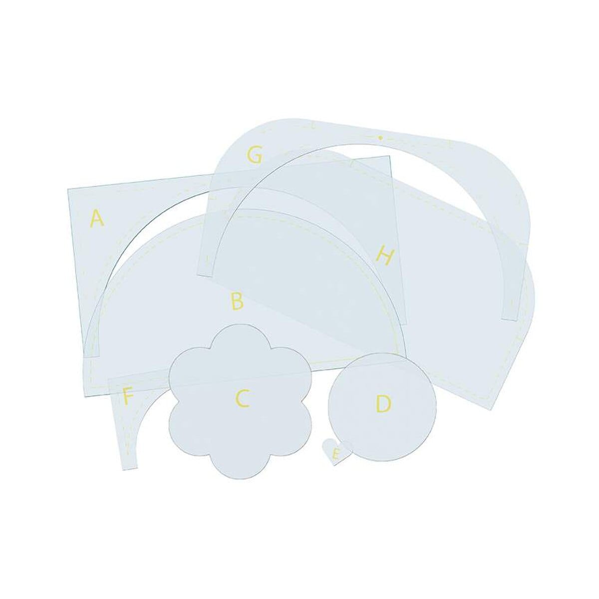This set of 8 acrylic templates may be helpful in cutting out the pieces to create the Vantage Point quilt, featuring prints from The Genesis of a Journey by Genesis Hall. They are made from 1.5mm acrylic.