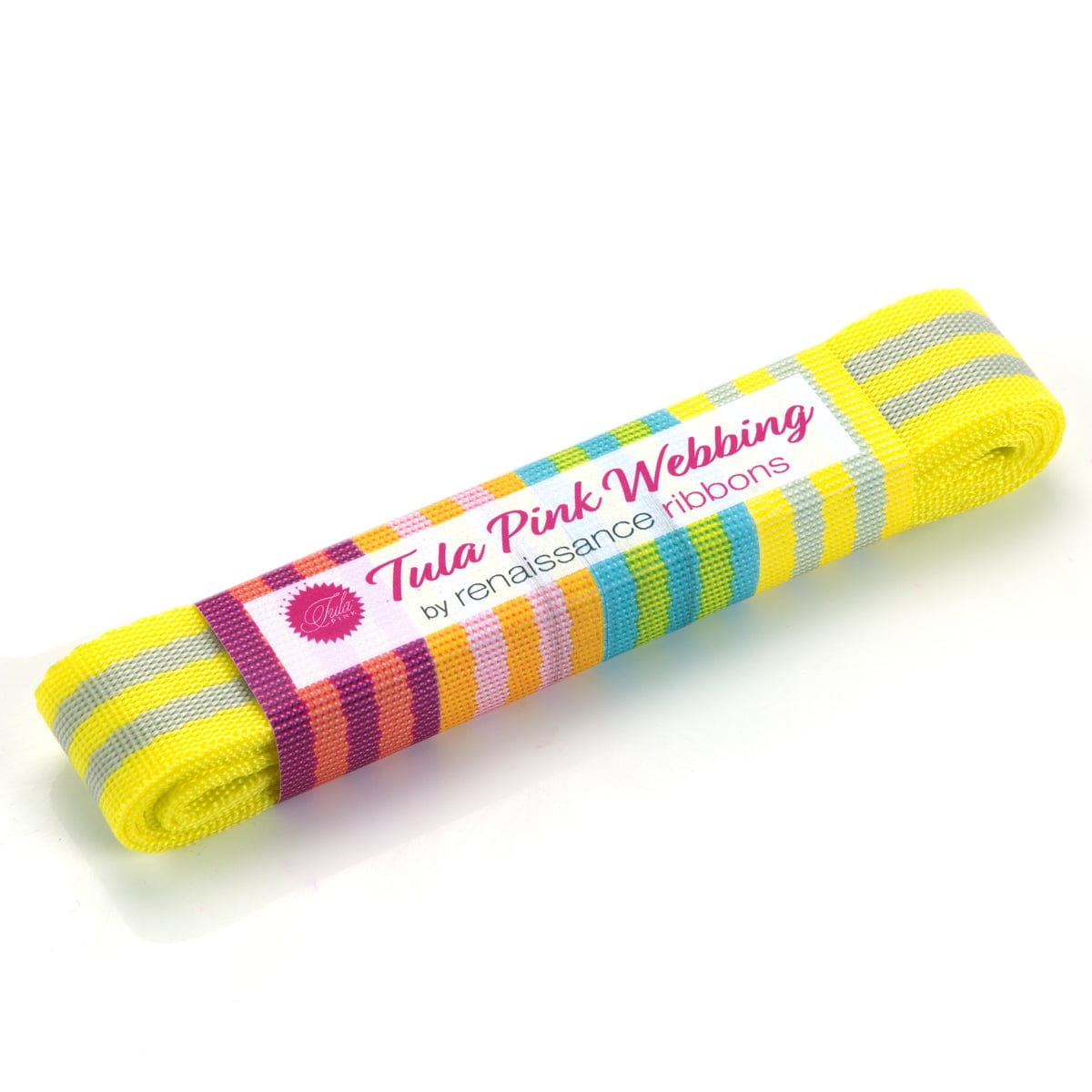 Renaissance Ribbons - Tula Pink Webbing - Tula Pink Webbing in Grey/Neon Yellow - TKP-91 Set col 3 - Two Yard Pack