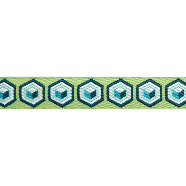 Renaissance Ribbons - Hexagon in Green & Blue 7/8" - One Yard