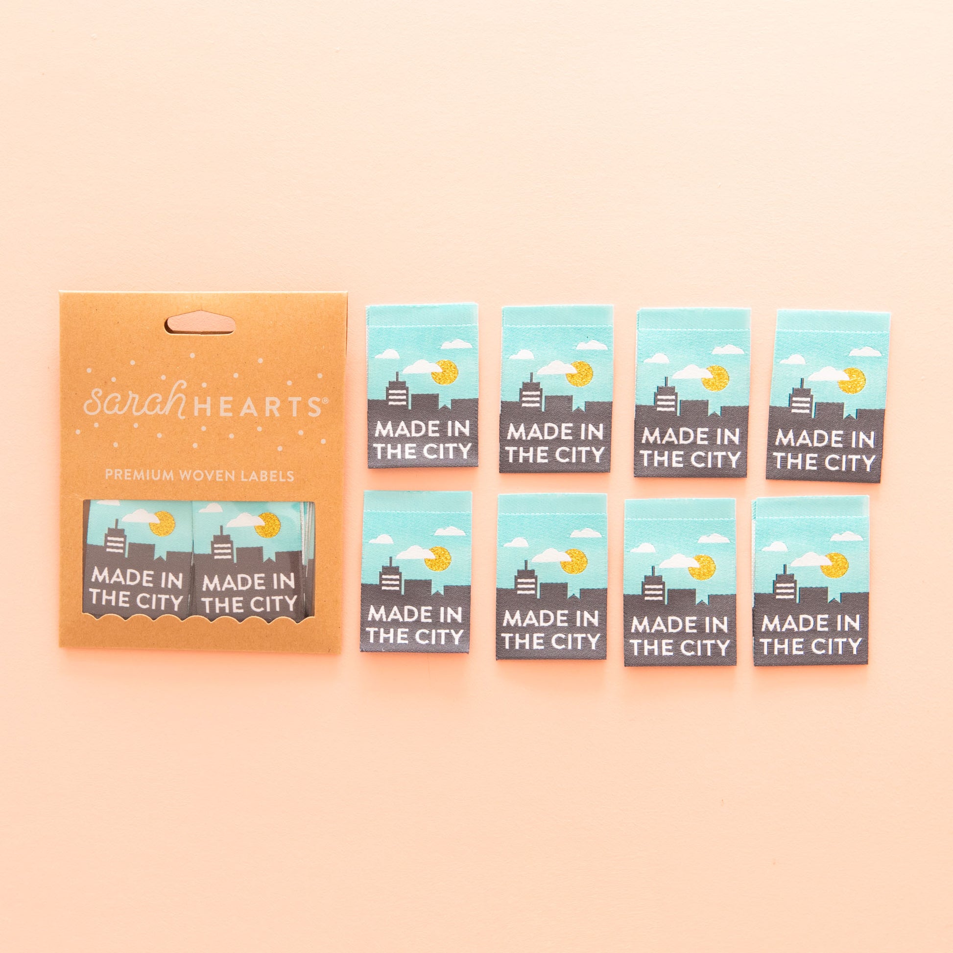 Are you creating amongst skyscrapers and city streets? Use these adorable tags to label your handmade projects! Each label features the text "made in the city" and a city skyline with a small metallic gold sun. They are super soft to the touch and never scratchy. The labels are fully washable and can handle the heat of the dryer.