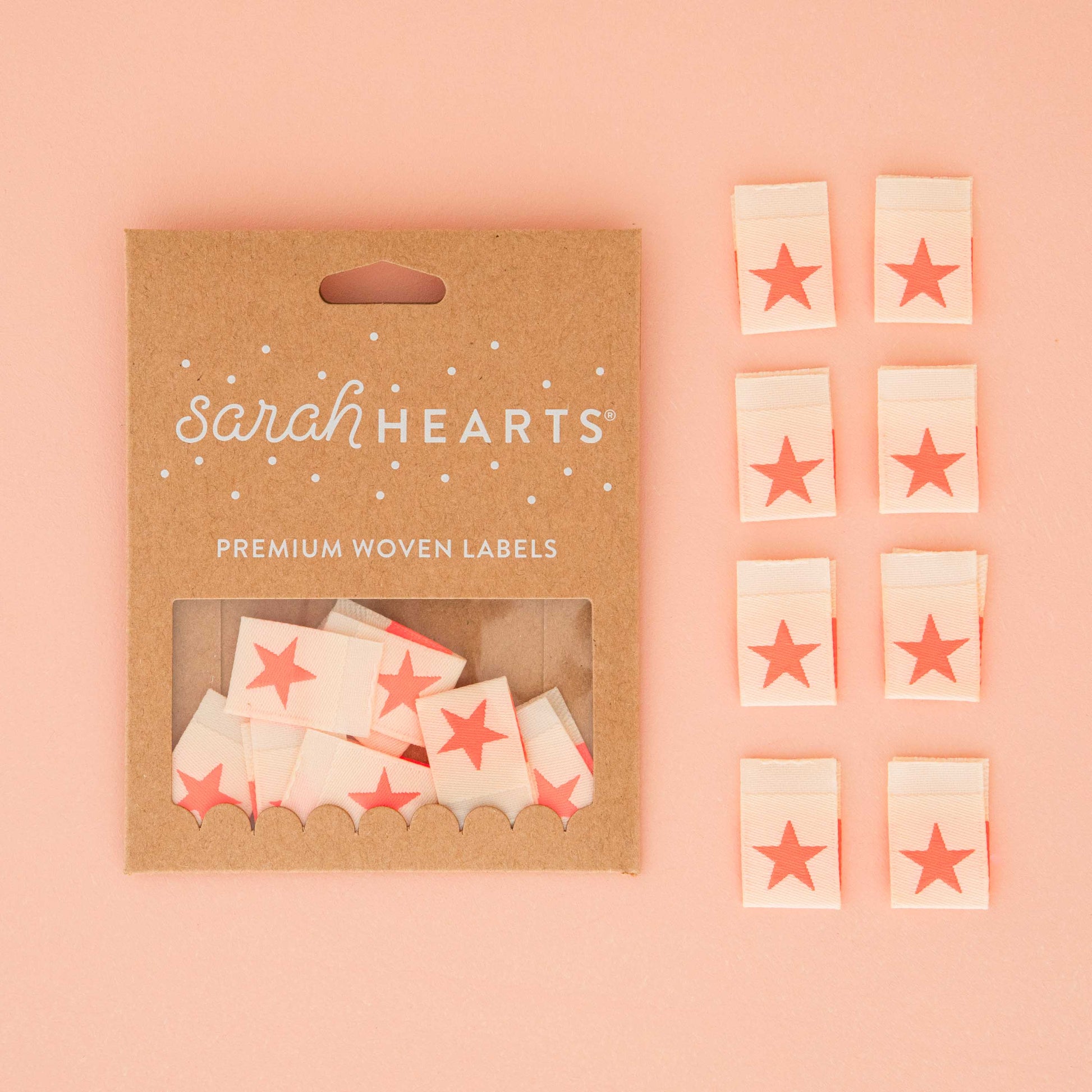Sarah Hearts - Pink Neon Stars - Sewing Woven Clothing Label Tags - LP224
