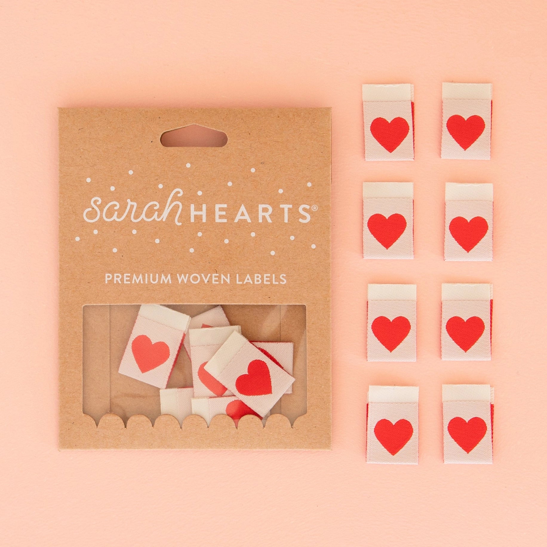 Sarah Hearts - Red Hearts - Sewing Woven Clothing Label Tags - LP182