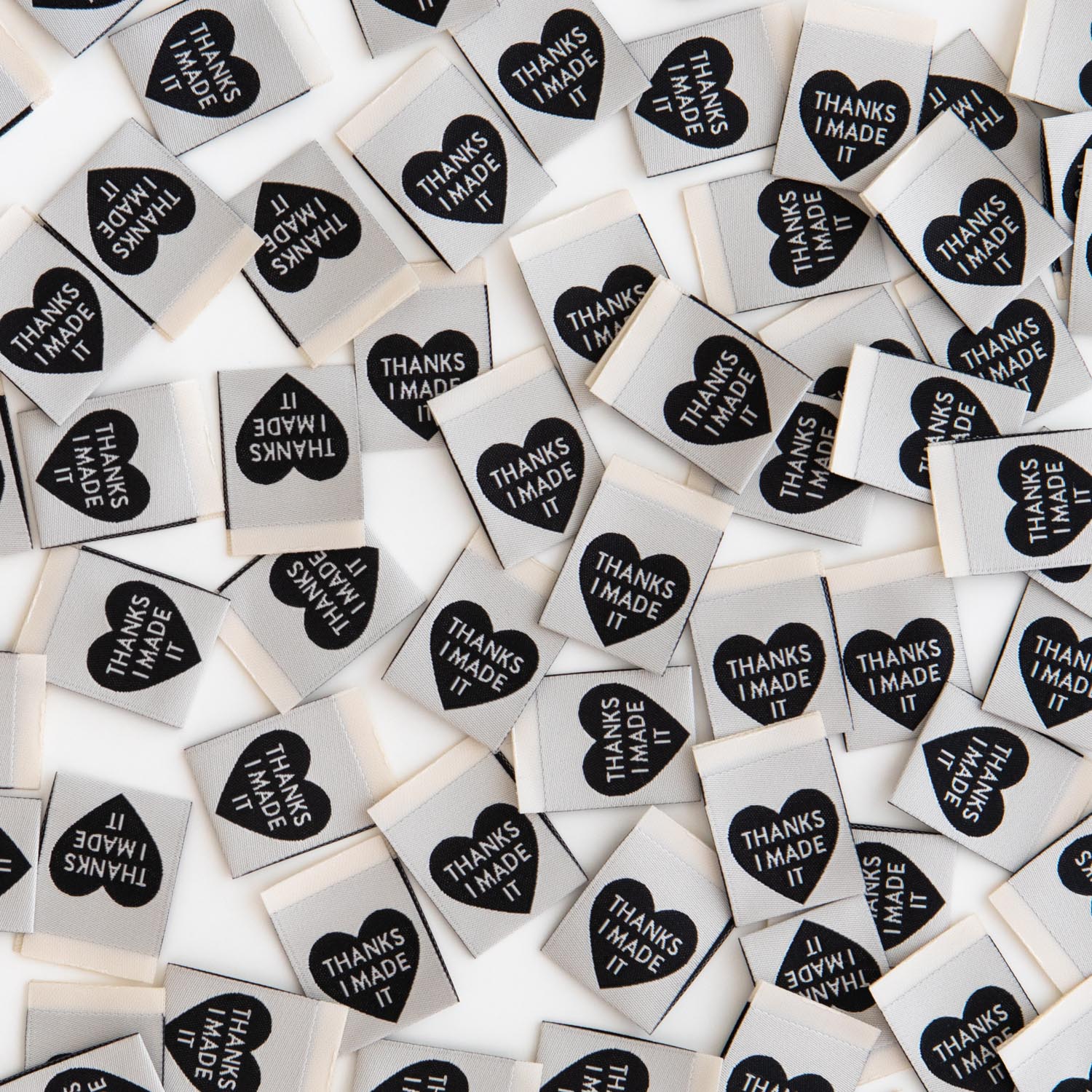 The fan favorite "thanks I made it" tag now in a neutral color way! Proudly sew this heart label into all of your favorite handmade garments, quilts and more. The high-quality woven labels are fully washable and can handle the heat of the dryer.