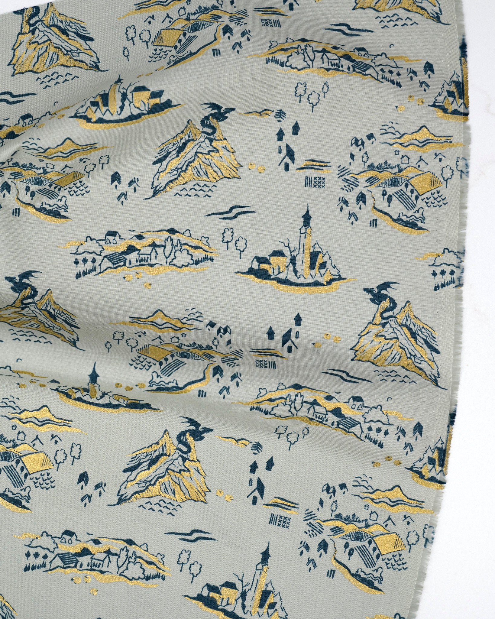 Mountain Town in Metallic Oyster - Fireglow by Sarah Watts - Half Yard Fabric (Preorder
