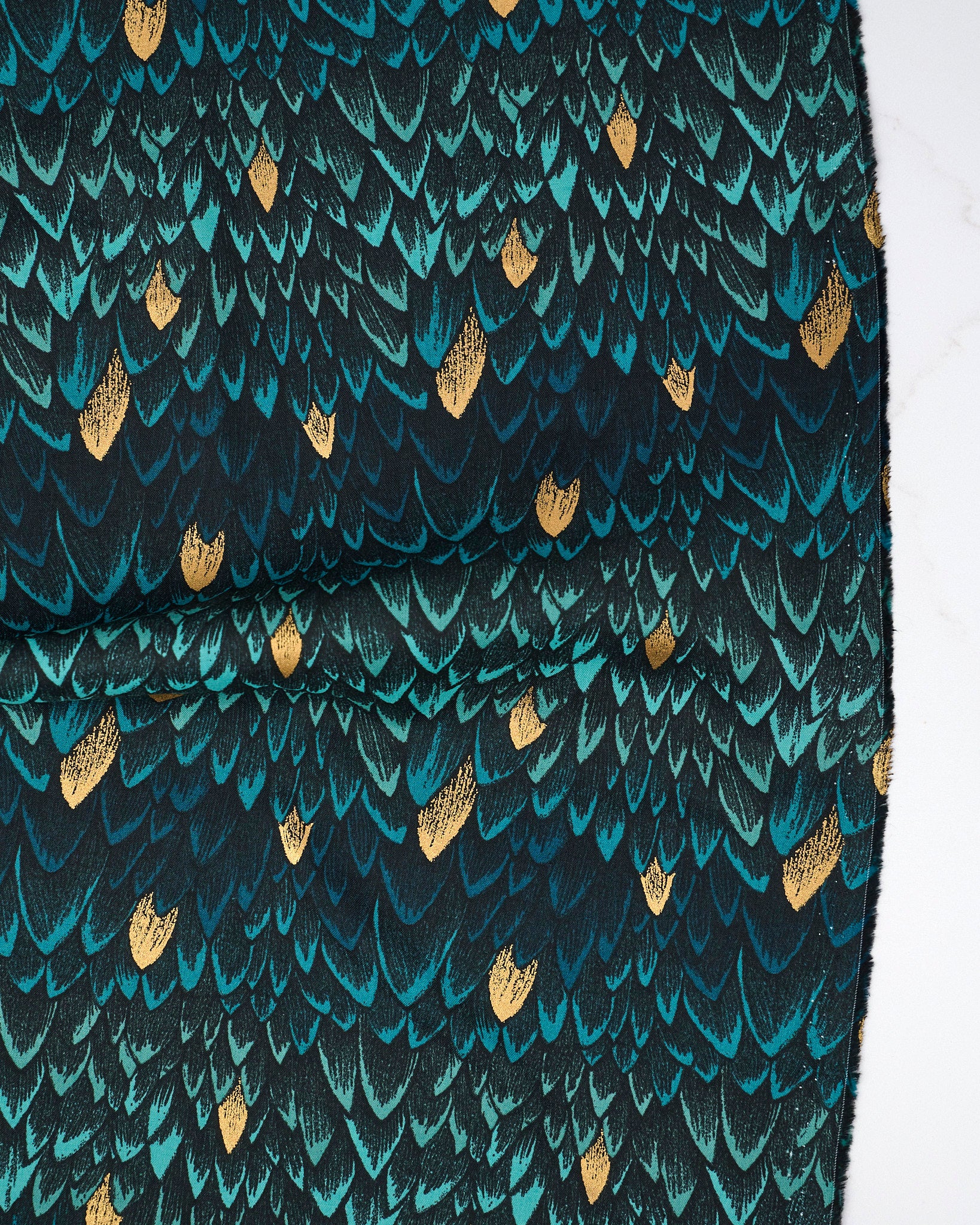 Dragon Lair in Metallic Watercress - Fireglow by Sarah Watts - Half Yard Fabric (Preorder)