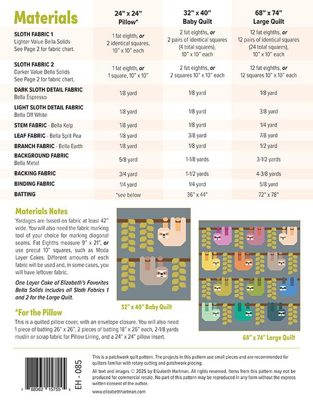 Snuggly Sloths - Elizabeth Hartman - EH 085 - Printed Pattern (Preorder)