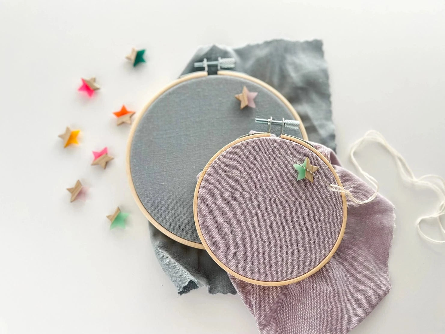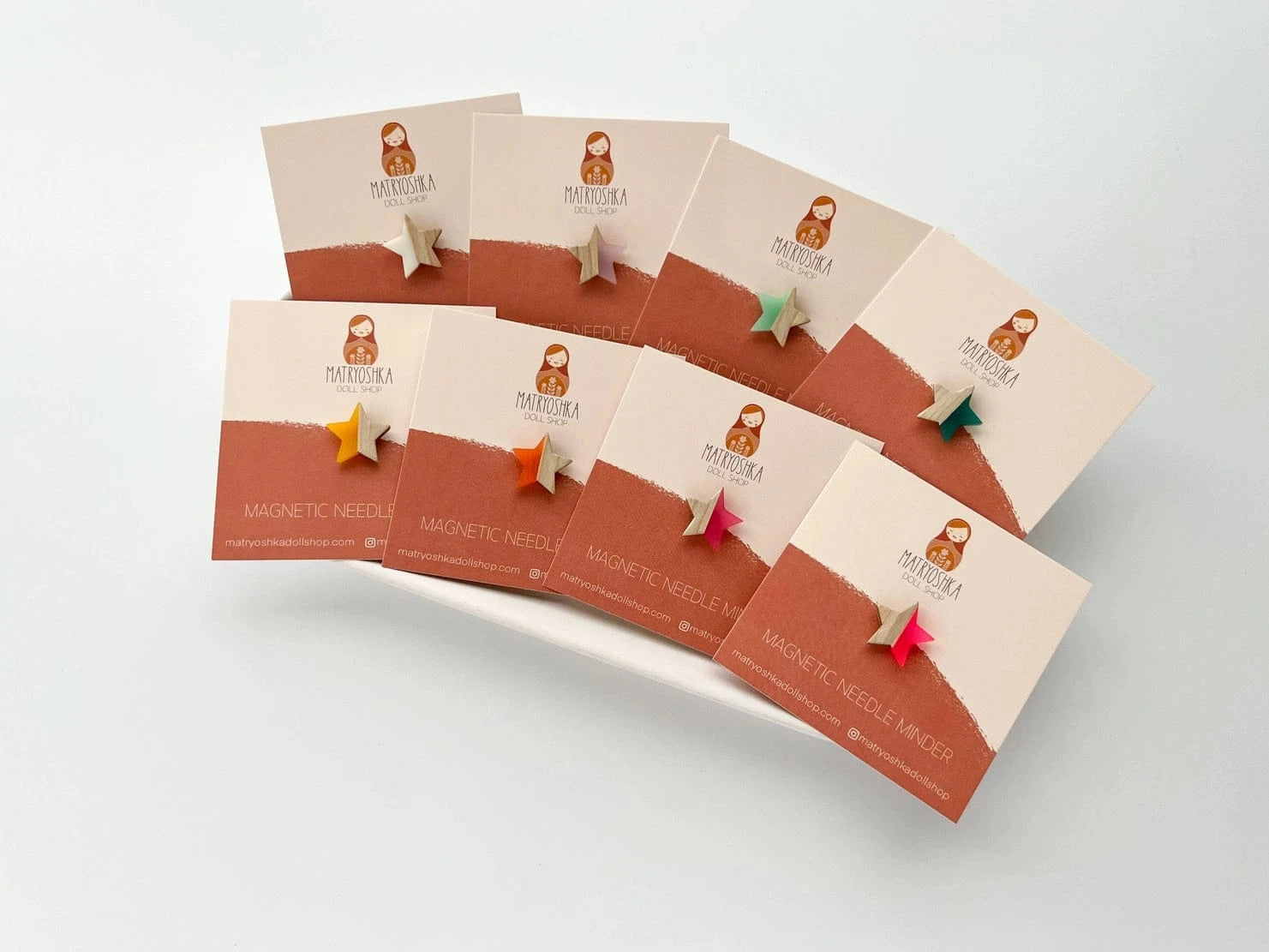 Magnetic star needle minders for embroidery, cross stitch, needlecraft projects, quilting and sewing.