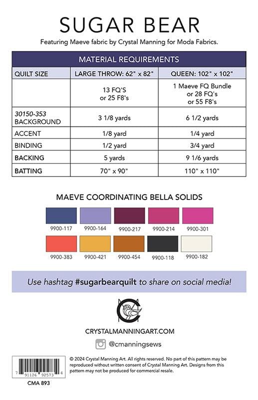 Sugar Bear - Pattern by Crystal Manning - Paper Pattern - CMA 893