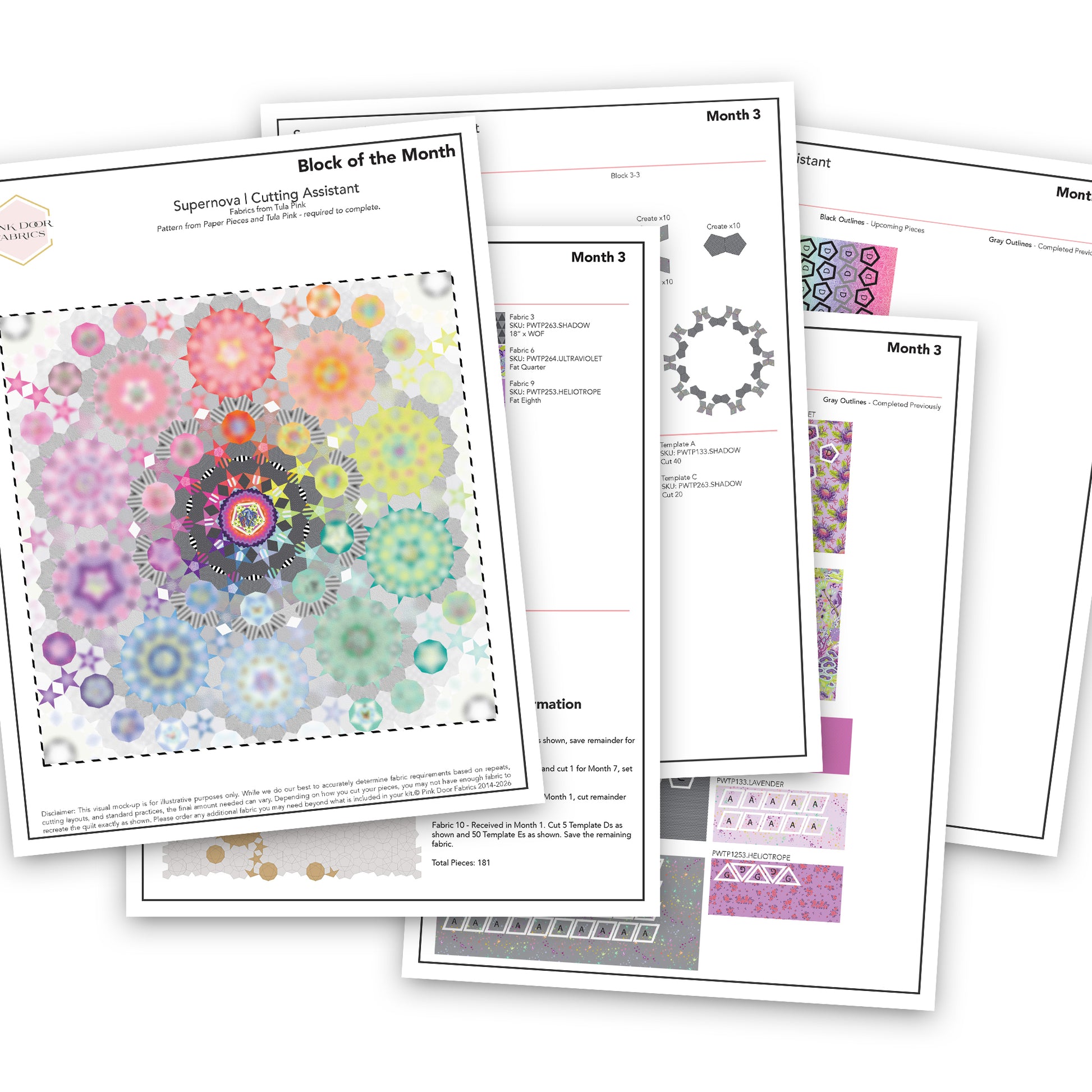 The Block of the Month, on the other hand, showcases Tula's stunning focal prints with intentional fussy-cutting to create vibrant, kaleidoscopic medallions - making each month's installment a true showstopper. And of course, Tula's focal prints have limited runs, so there is a limited window to make this quilt.