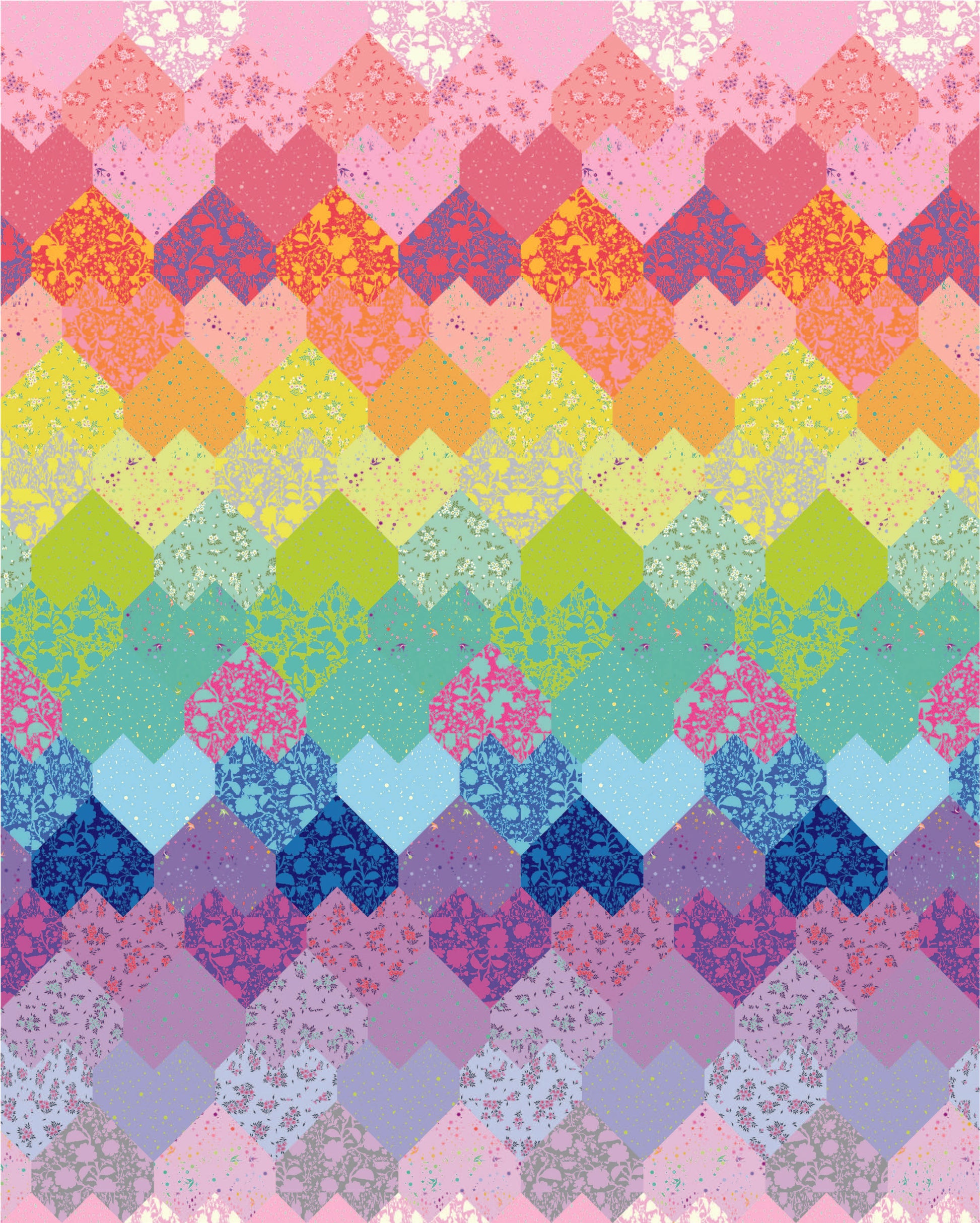 Sweetheart Medley Quilt Kit, Fat Quarter Version - Sweet Potato Quilts with Tula Pink True Colors Fabric (Preorder)