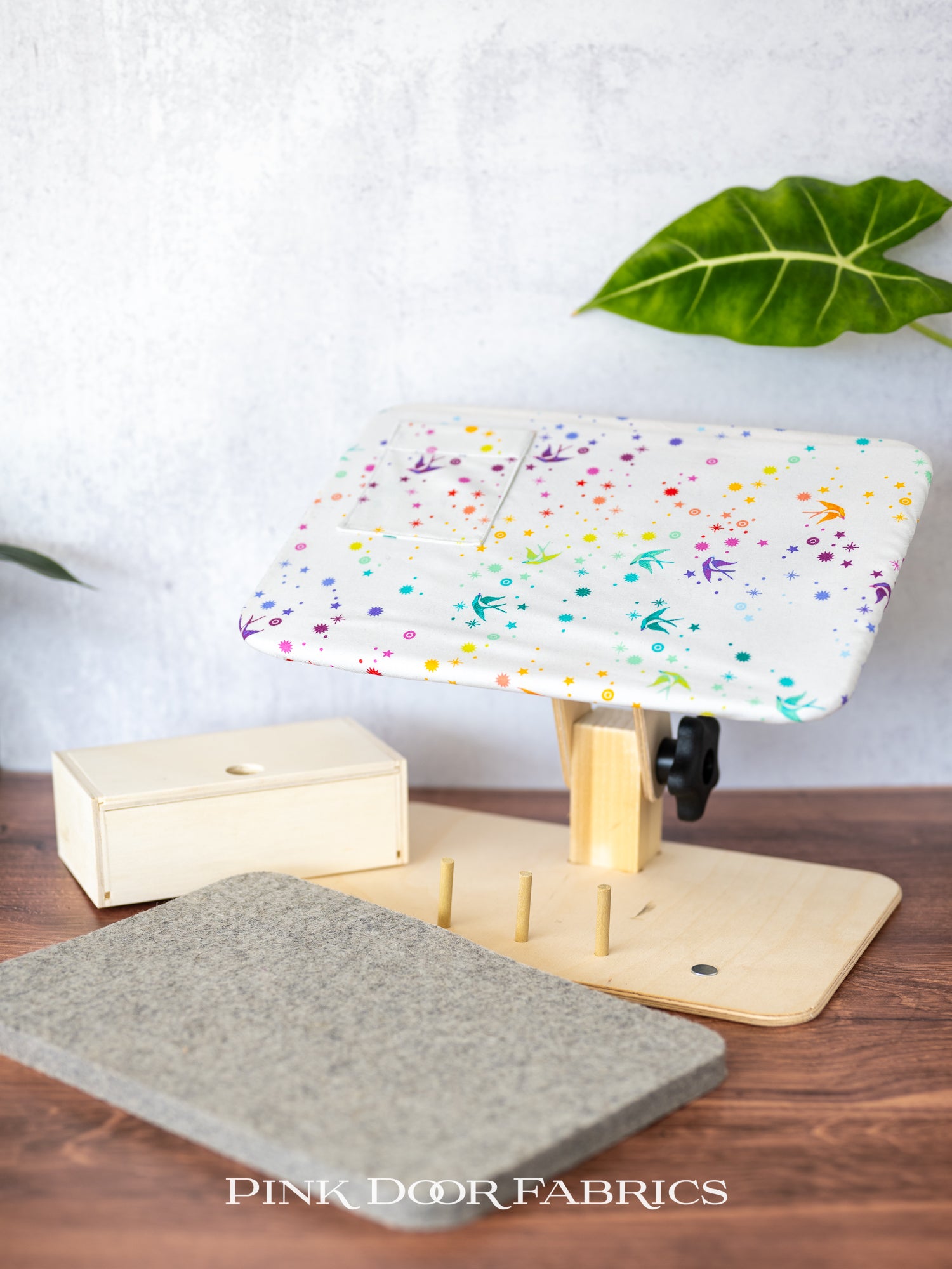 This small adjustable lap table provides a rest for hands making it ideal for appliqué and handwork.