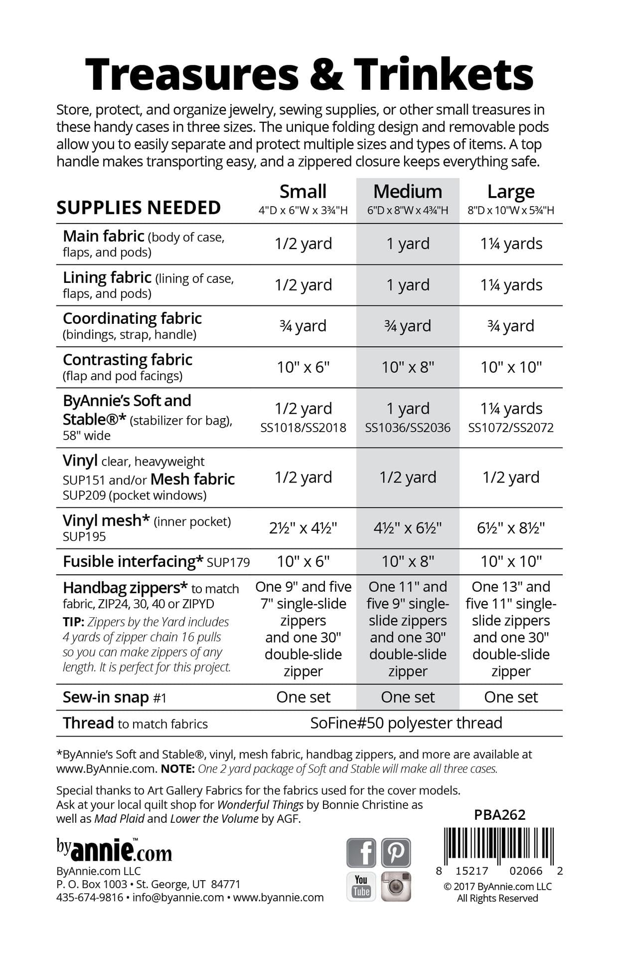 Treasures and Trinkets - By Annie - Printed Bag Pattern - PBA262