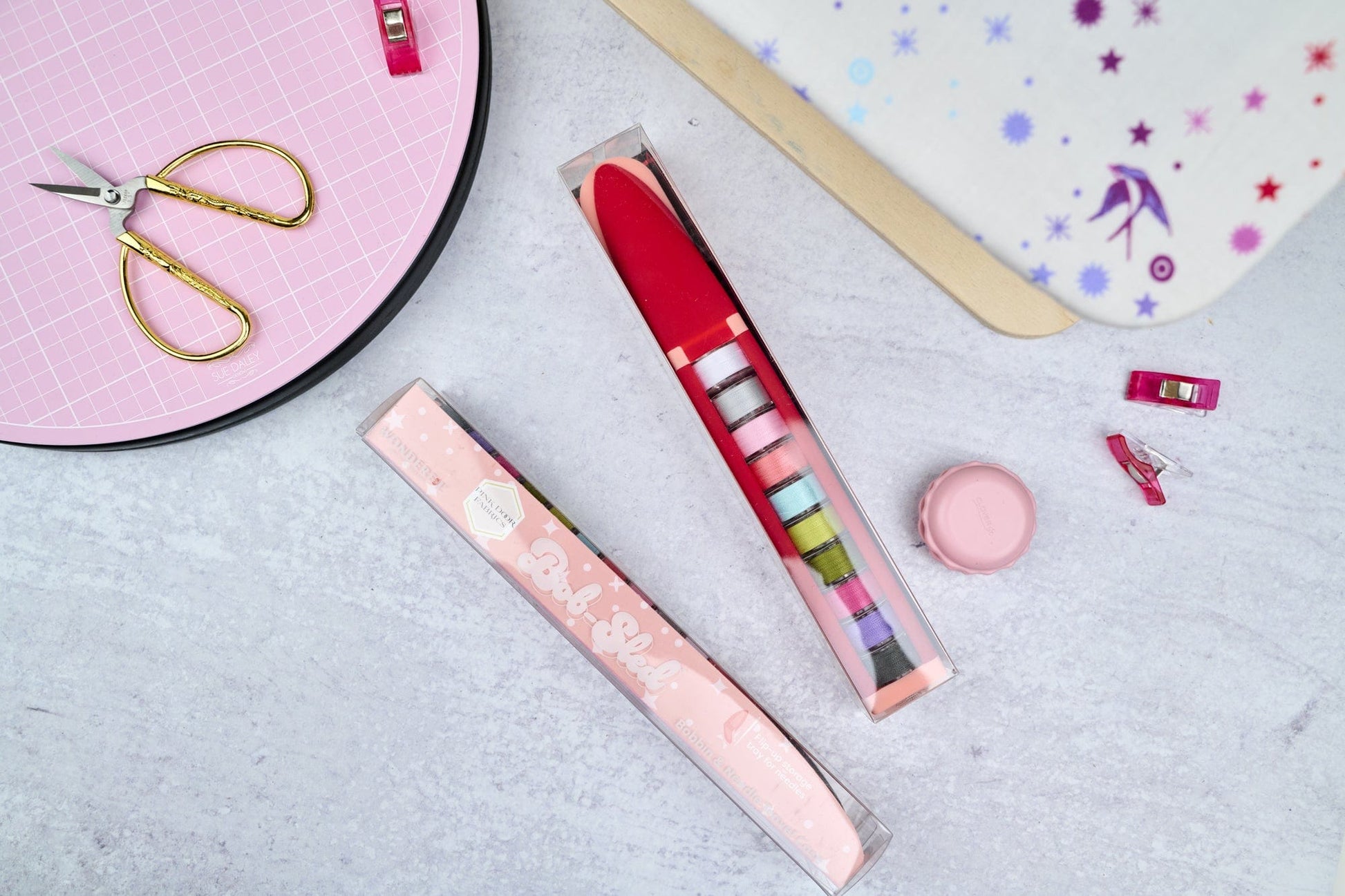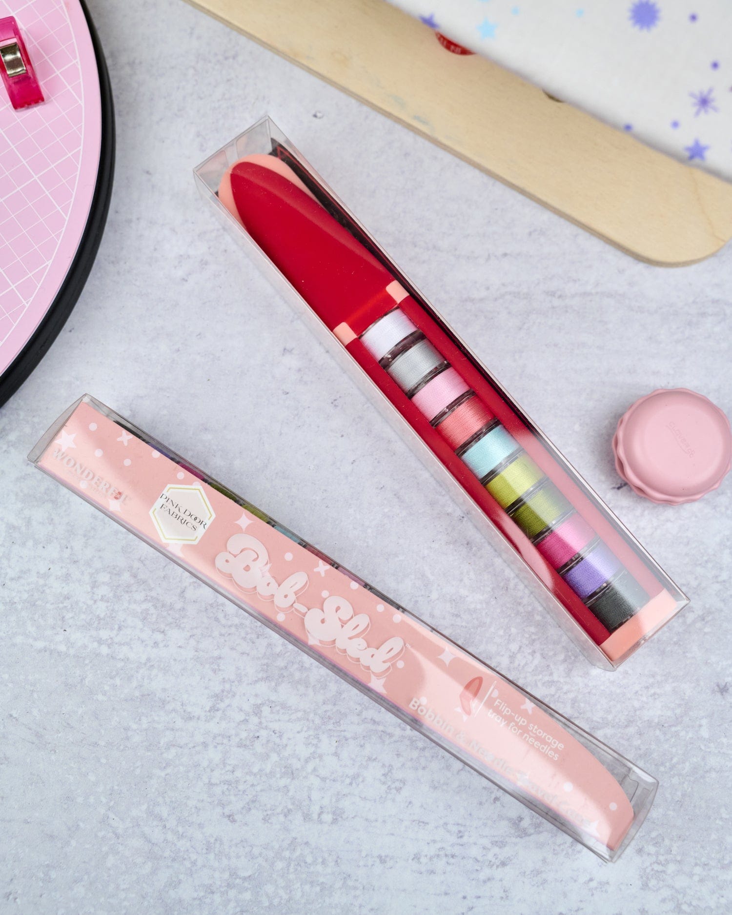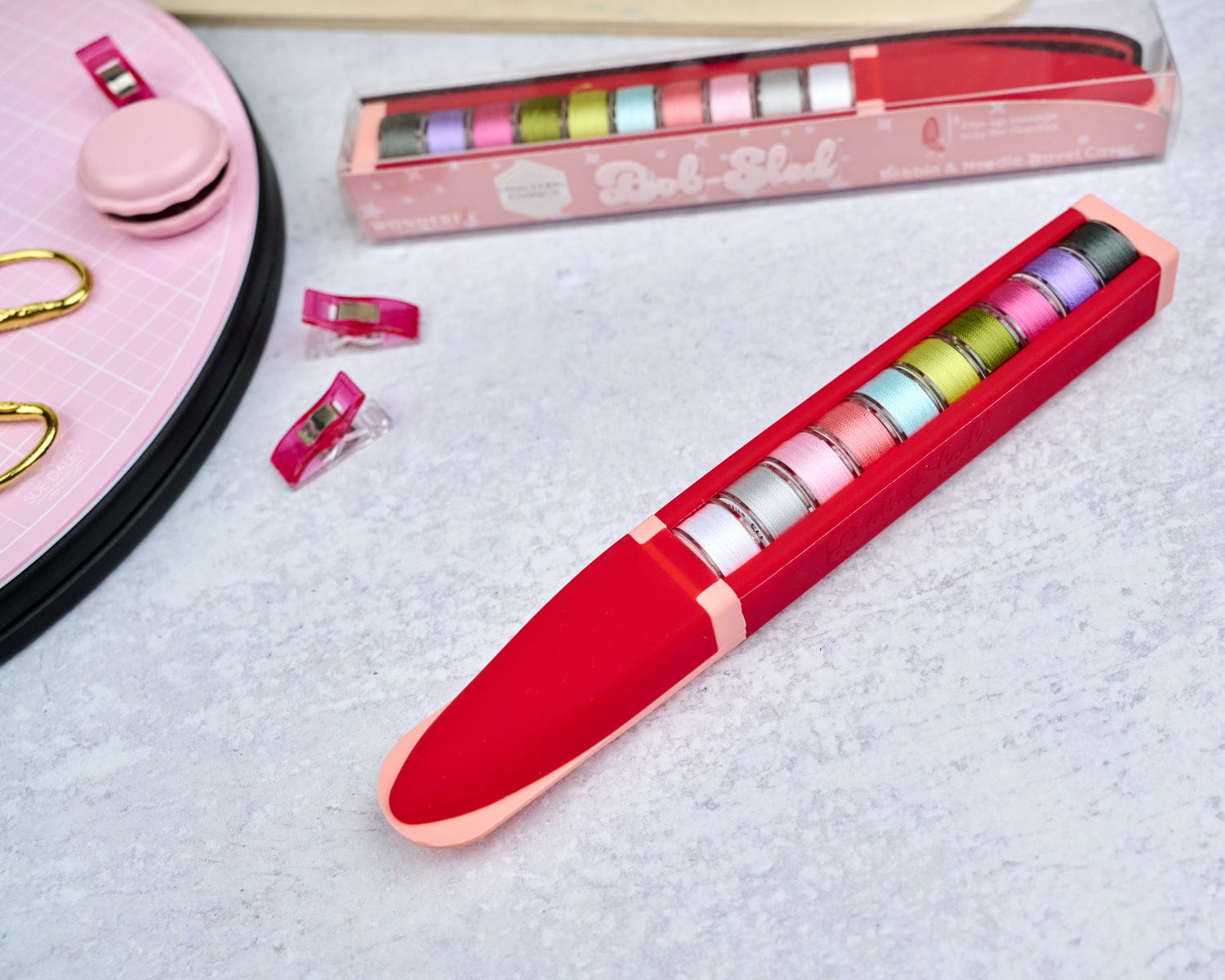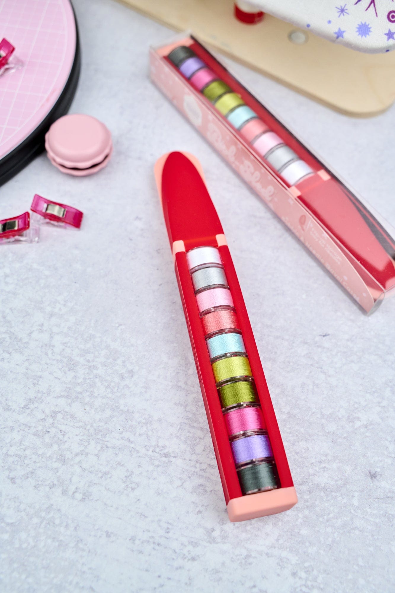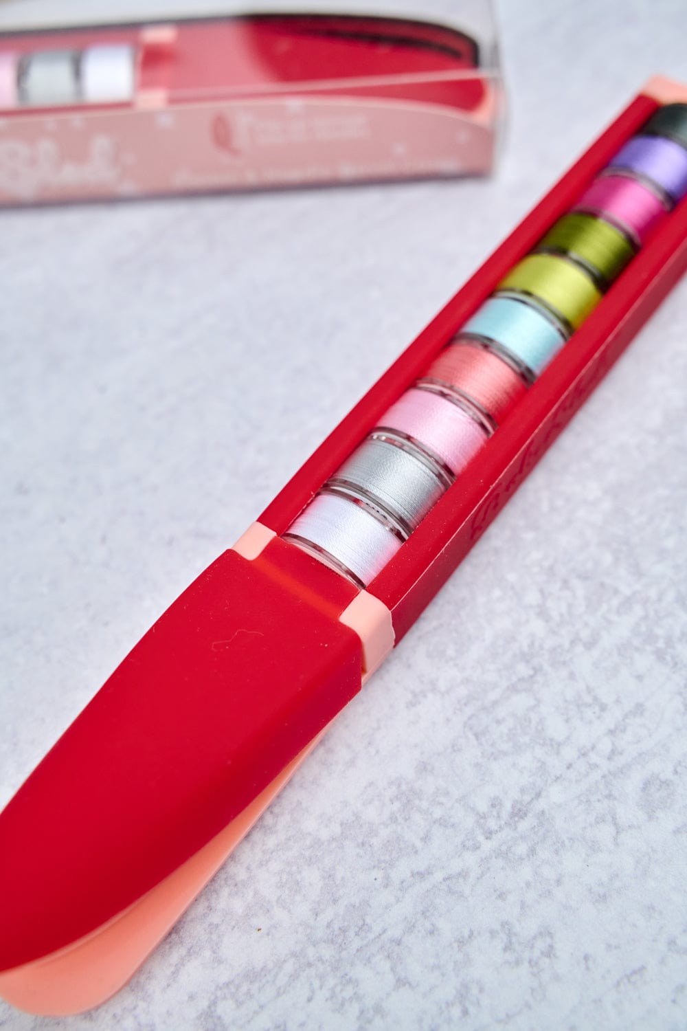 A convenient and handy way to keep your bobbins / threads secure, this bobbin holder comes with 10 bobbins loaded with threads coordinated to Tula Pink's Full Moon Forest II fabric collection. There's also a place to safely store your needles!