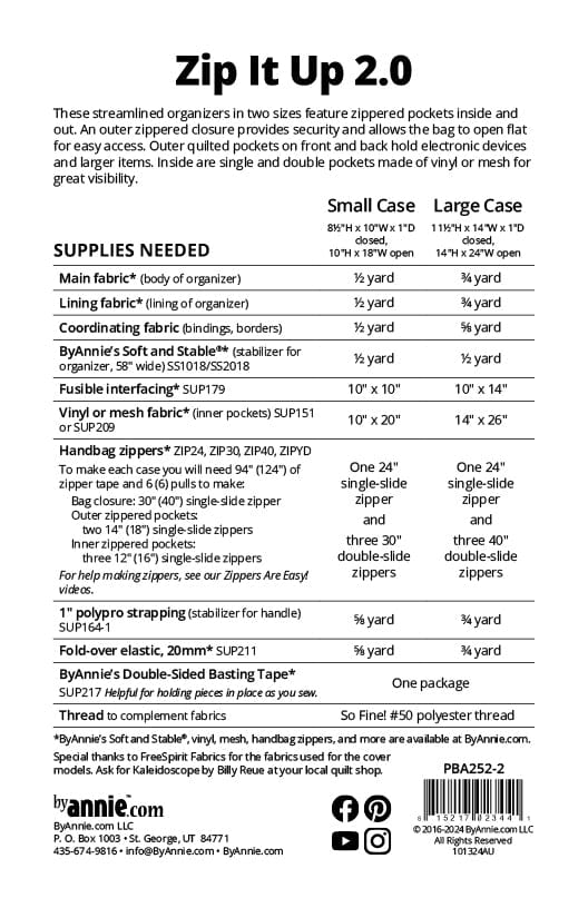 Zip It Up 2.0 Pattern - Pattern by By Annie - Paper Pattern - PBA252-2